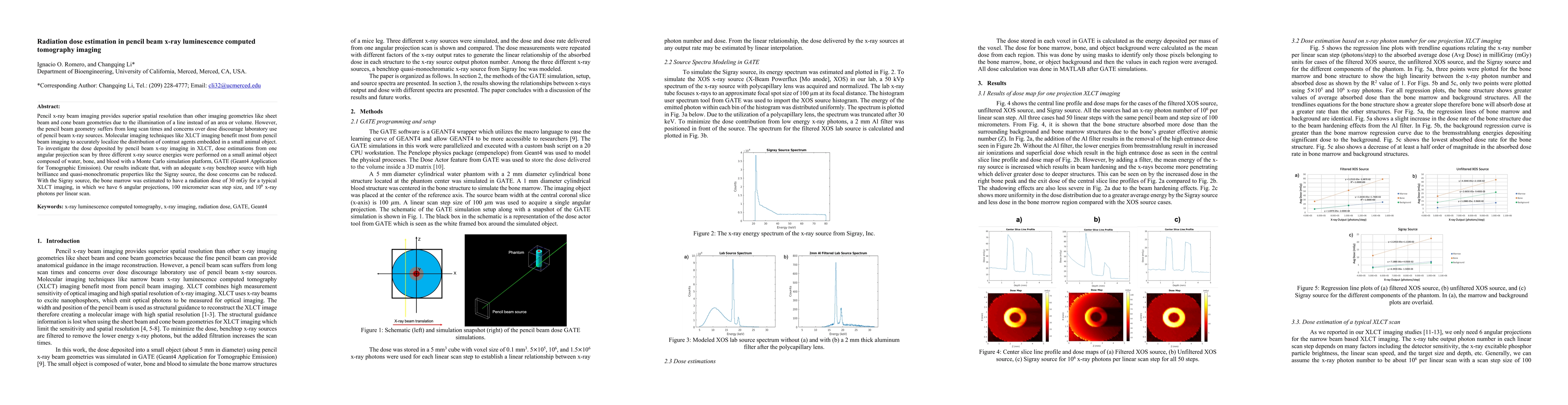 The research used a Monte Carlo simulation platform called GATE to simulate pencil beam x-ray imaging and estimate the radiation dose deposited in a 5 mm diameter object.
