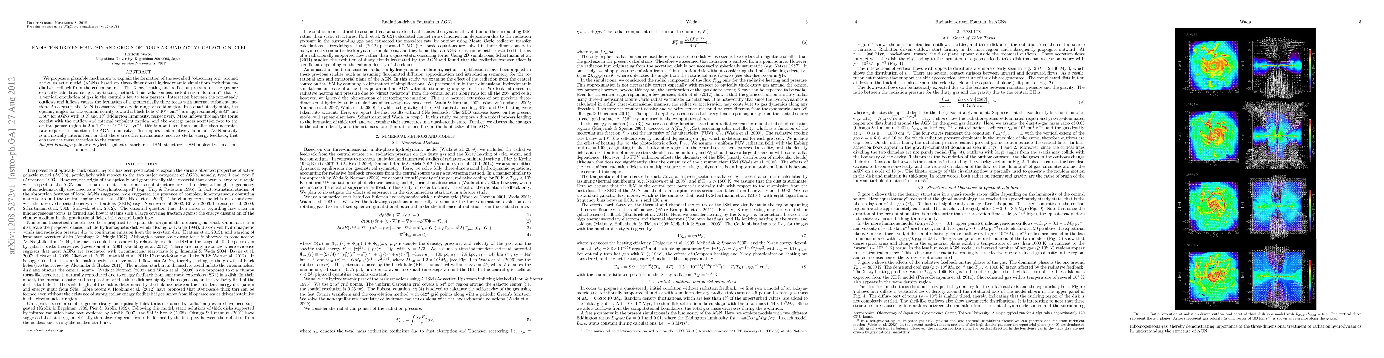 This paper proposes a mechanism for the formation of obscuring tori around active galactic nuclei (AGNs) through radiation-driven gas circulation, termed "fountain," driven by X-ray heating and radiation pressure. The torus's formation is attributed to interactions between outflows and inflows, leading to a geometrically thick structure that obscures the AGN from a wide range of angles.