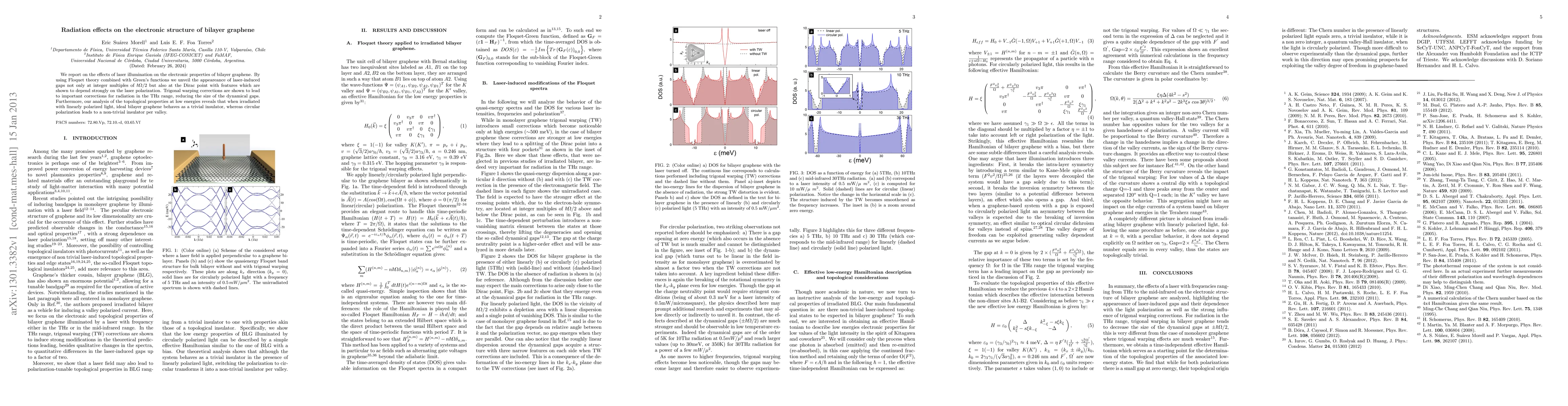 We report on the effects of laser illumination on the electronic properties of bilayer graphene. By using Floquet theory combined with Green's functions we unveil the appeareance of laser-induced gaps not only at integer multiples of $\hbar \Omega /2$ but also at the Dirac point with features which are shown to depend strongly on the laser polarization. Trigonal warping corrections are shown to lead to important corrections for radiation in the THz range, reducing the size of the dynamical gaps. Furthermore, our analysis of the topological properties at low energies reveals that when irradiated with linearly polarized light, ideal bilayer graphene behaves as a trivial insulator, whereas circular polarization leads to a non-trivial insulator per valley.
