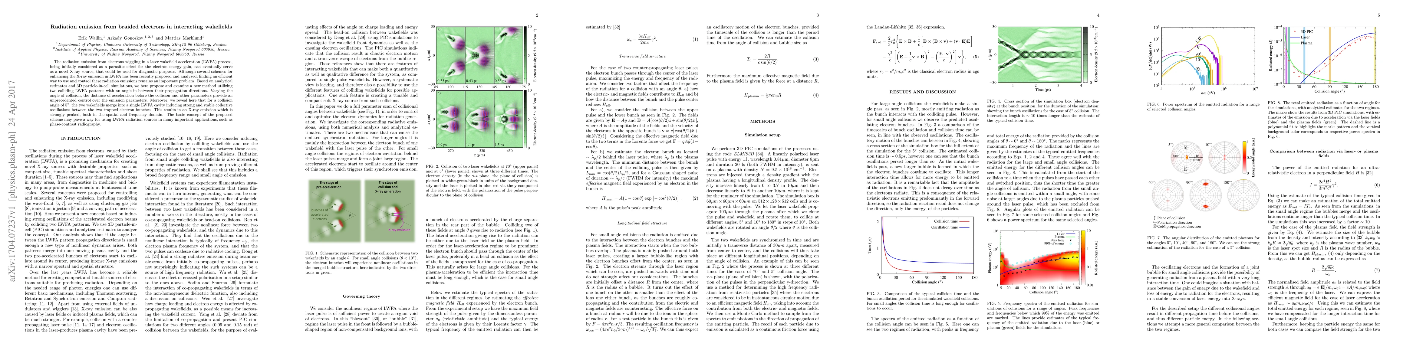 The radiation emission from electrons wiggling in a laser wakefield acceleration (LWFA) process, being initially considered as a parasitic effect for the electron energy gain, can eventually serve as a novel X-ray source, that could be used for diagnostic purposes. Although several schemes for enhancing the X-ray emission in LWFA has been recently proposed and analyzed, finding an efficient way to use and control these radiation emissions remains an important problem. Based on analytical estimates and 3D particle-in-cell simulations, we here propose and examine a new method utilizing two colliding LWFA patterns with an angle in-between their propagation directions. Varying the angle of collision, the distance of acceleration before the collision and other parameters provide an unprecedented control over the emission parameters. Moreover, we reveal here that for a collision angle of 5$^\circ$, the two wakefields merge into a single LWFA cavity inducing strong and stable collective oscillations between the two trapped electron bunches. This results in an X-ray emission which is strongly peaked, both in the spatial and frequency domain. The basic concept of the proposed scheme may pave a way for using LWFA radiation sources in many important applications, such as phase-contrast radiography.