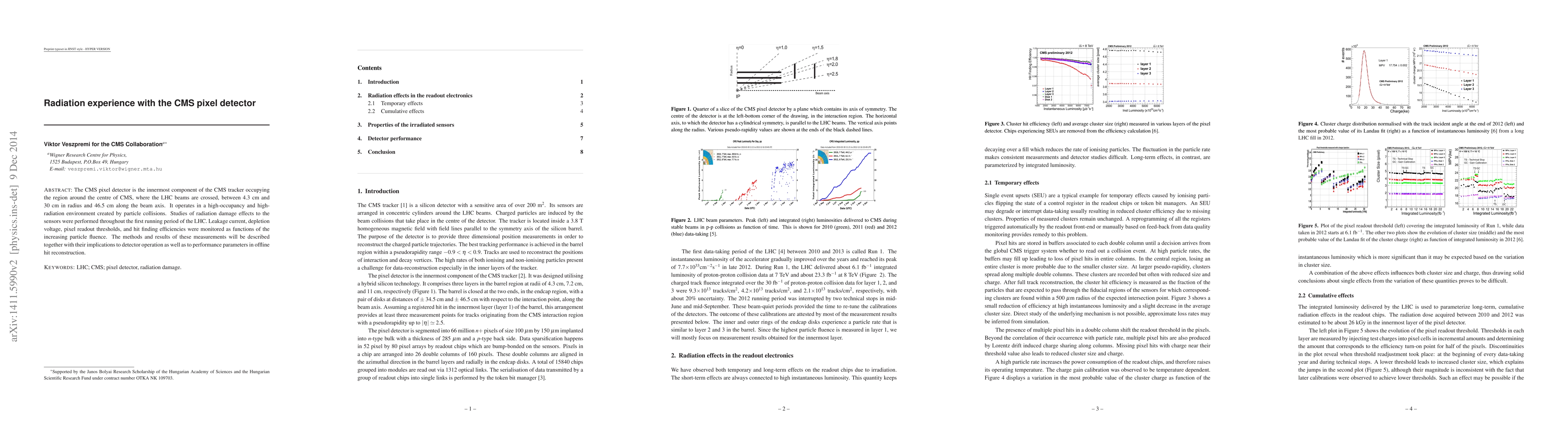 This paper investigates the radiation damage effects on the CMS pixel detector, the innermost component of the CMS tracker in the LHC, by monitoring parameters like leakage current and hit finding efficiencies throughout the first operational period. The findings are crucial for understanding detector operation and offline hit reconstruction performance.