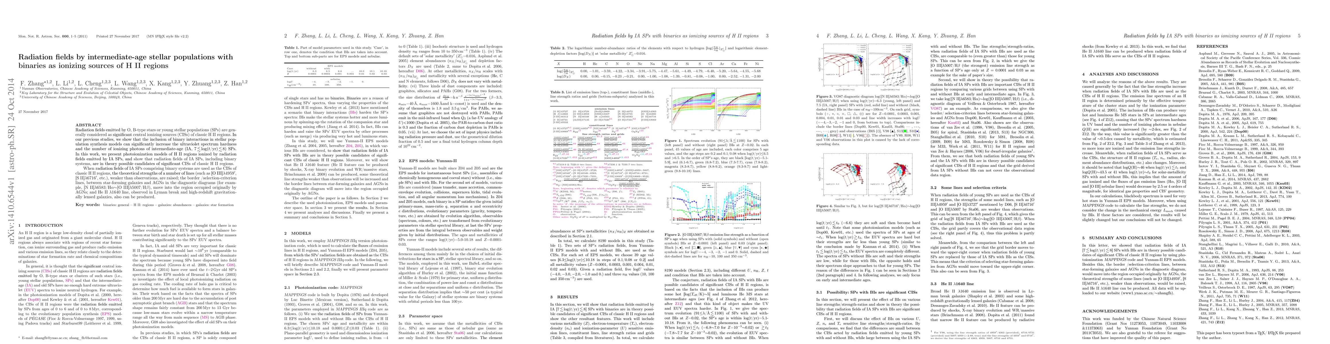 This paper explores the potential of radiation fields from intermediate-age stellar populations with binary systems as significant ionizing sources of classic H II regions, demonstrating that such fields can produce theoretical line strengths that match observational data, including the He II 1640 line observed in high-redshift galaxies.