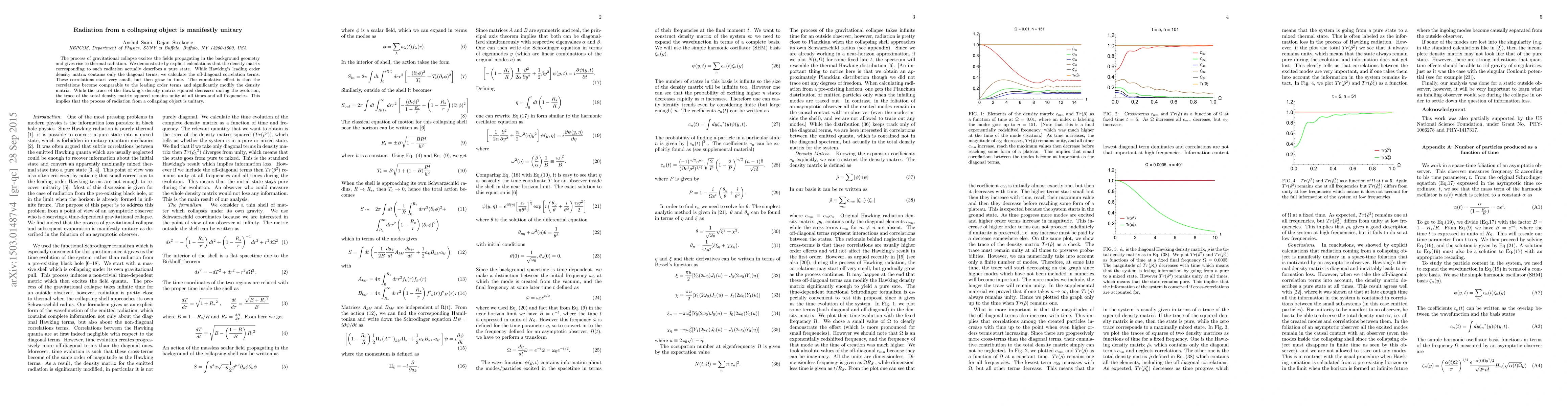 The process of gravitational collapse excites the fields propagating in the background geometry and gives rise to thermal radiation. We demonstrate by explicit calculations that the density matrix corresponding to such radiation actually describes a pure state. While Hawking's leading order density matrix contains only the diagonal terms, we calculate the off-diagonal correlation terms. These correlations start very small, but then grow in time. The cumulative effect is that the correlations become comparable to the leading order terms and significantly modify the density matrix. While the trace of the Hawking's density matrix squared diverges from unity during the evolution, the trace of the total density matrix squared remains unity at all times and all frequencies. This implies that the process of radiation from a collapsing object is unitary.