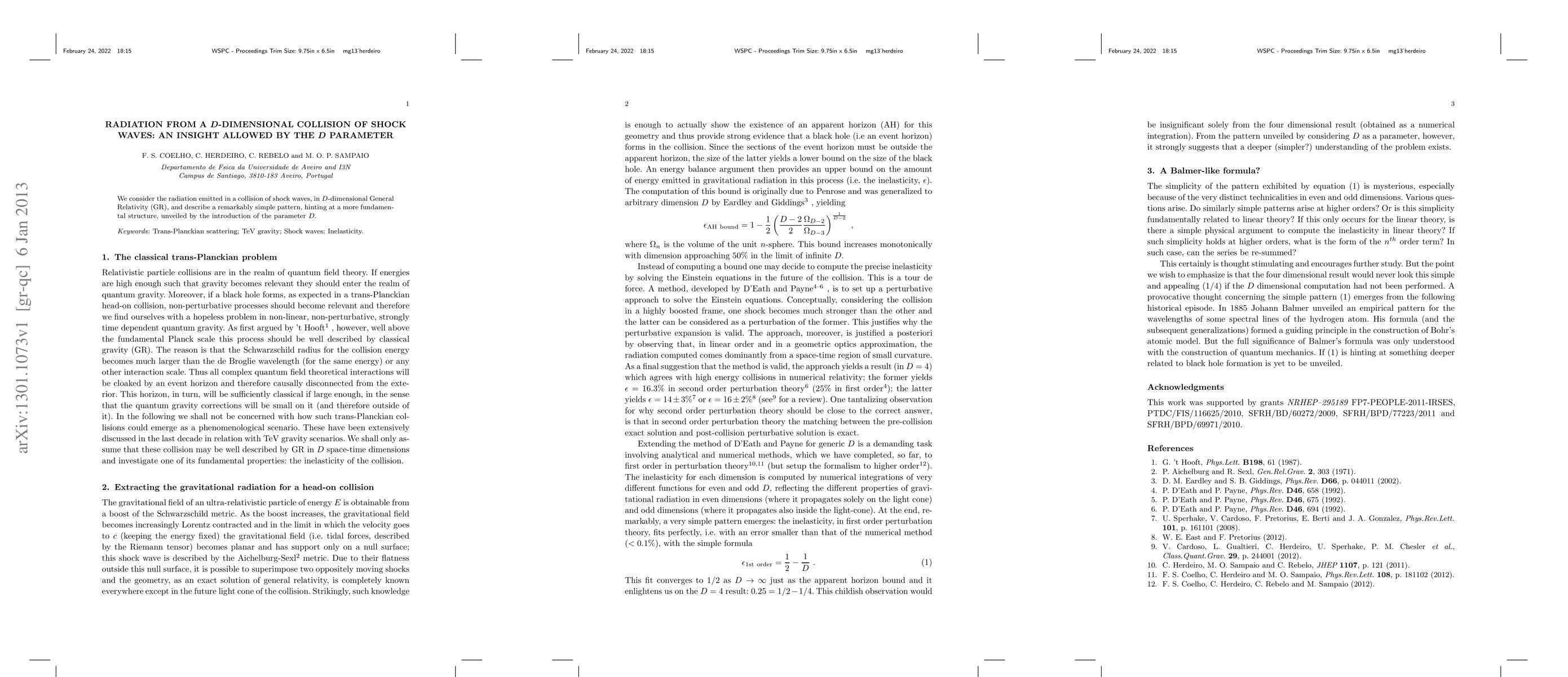 Researchers discover a simple radiation pattern in D-dimensional collisions of shock waves, hinting at a fundamental structure made possible by the D parameter.