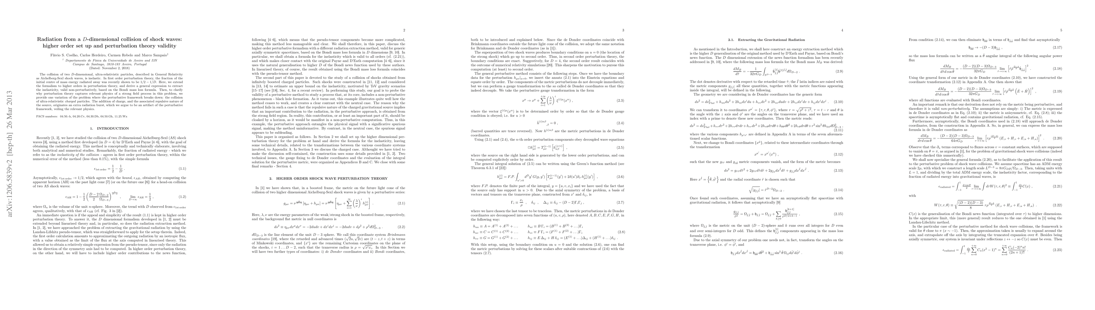 The collision of two D-dimensional, ultra-relativistic particles, described in General Relativity as Aichelberg-Sexl shock waves, is inelastic. In first order perturbation theory, the fraction of the initial centre of mass energy radiated away was recently shown to be 1/2 - 1/D. Here, we extend the formalism to higher orders in perturbation theory, and derive a general expression to extract the inelasticity, valid non-perturbatively, based on the Bondi mass loss formula. Then, to clarify why perturbation theory captures relevant physics of a strong field process in this problem, we provide one variation of the problem where the perturbative framework breaks down: the collision of ultra-relativistic charged particles. The addition of charge, and the associated repulsive nature of the source, originates an extra radiation burst, which we argue to be an artifact of the perturbative framework, veiling the relevant physics.