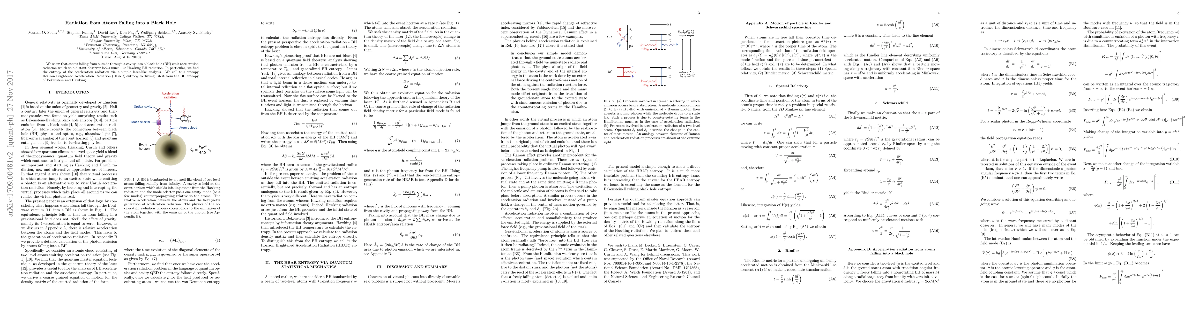 Research finds that atoms falling into a black hole emit radiation that resembles Hawking radiation, with a new term called Horizon Brightened Acceleration Radiation (HBAR) entropy.