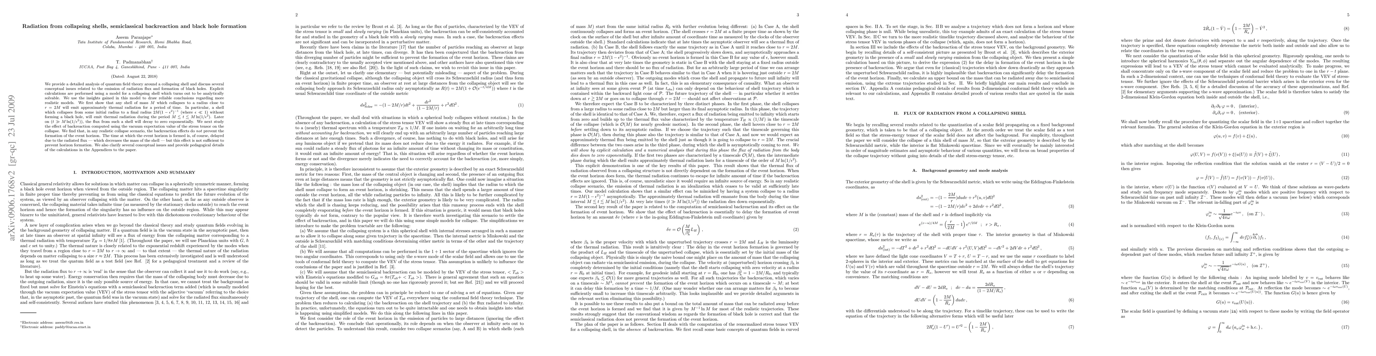 We provide a detailed analysis of quantum field theory around a collapsing shell and discuss several conceptual issues related to the emission of radiation flux and formation of black holes. Explicit calculations are performed using a model for a collapsing shell which turns out to be analytically solvable. We use the insights gained in this model to draw reliable conclusions regarding more realistic models. We first show that any shell of mass $M$ which collapses to a radius close to $r=2M$ will emit approximately thermal radiation for a period of time. In particular, a shell which collapses from some initial radius to a final radius $2M(1-\epsilon^2)^{-1}$ (where $\epsilon \ll 1$) without forming a black hole, will emit thermal radiation during the period $M\lesssim t \lesssim M\ln (1/\epsilon^2)$. Later on ($t\gg M \ln(1/\epsilon^2)$), the flux from such a shell will decay to zero exponentially. We next study the effect of backreaction computed using the vacuum expectation value of the stress tensor on the collapse. We find that, in any realistic collapse scenario, the backreaction effects do \emph{not} prevent the formation of the event horizon. The time at which the event horizon is formed is, of course, delayed due to the radiated flux -- which decreases the mass of the shell -- but this effect is not sufficient to prevent horizon formation. We also clarify several conceptual issues and provide pedagogical details of the calculations in the Appendices to the paper.