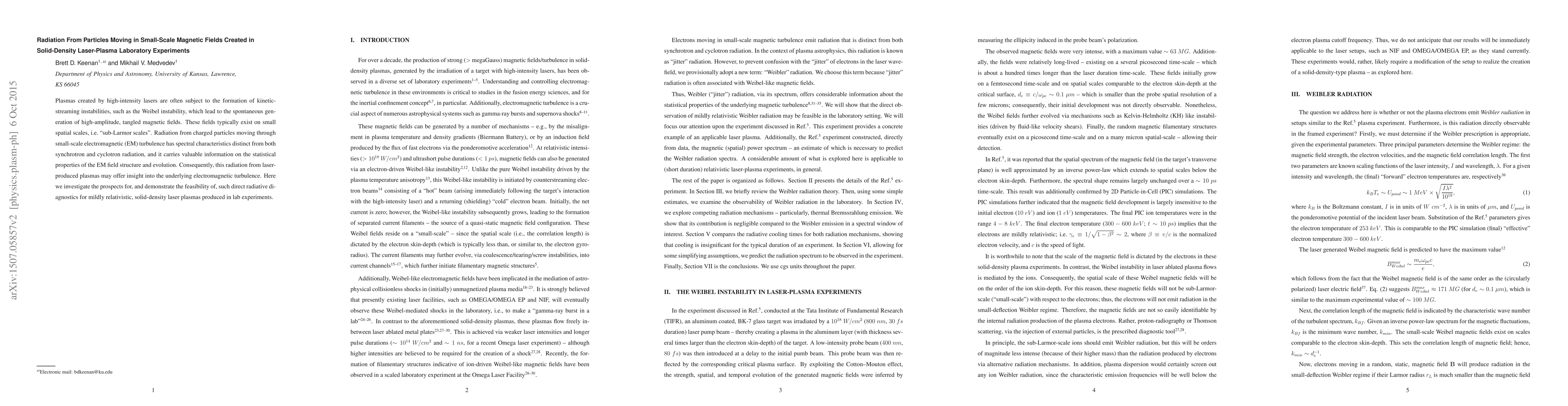 This paper investigates the radiation emitted by charged particles moving through small-scale magnetic fields generated by kinetic-streaming instabilities in solid-density laser-plasma experiments. The study demonstrates the feasibility of using this unique radiation as a direct diagnostic tool to understand the electromagnetic turbulence in these plasmas.