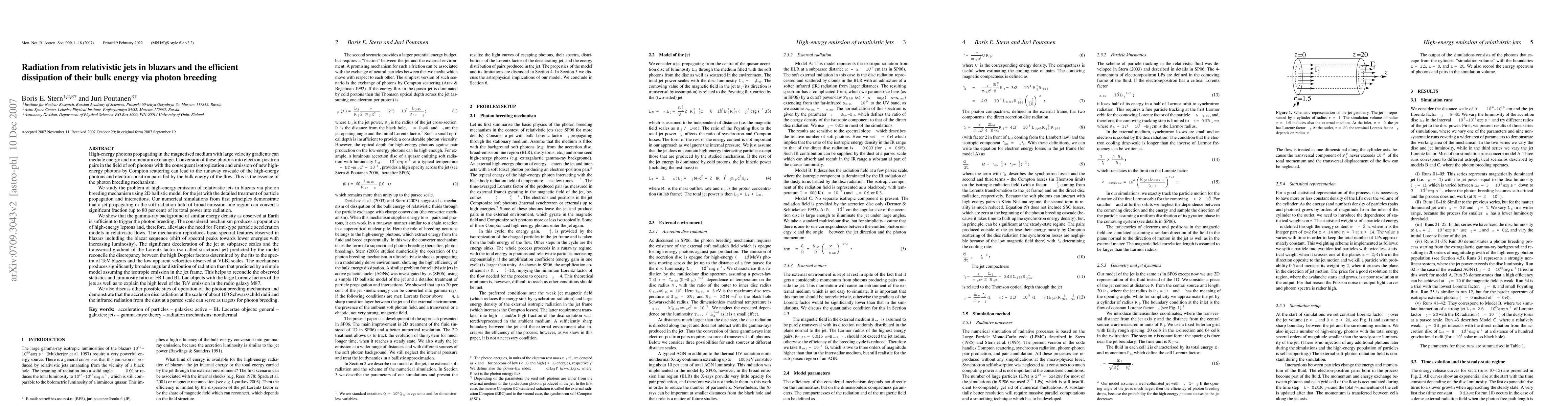 High-energy photons propagating in the magnetised medium with large velocity gradients can mediate energy and momentum exchange. Conversion of these photons into electron-positron pairs in the field of soft photons with the consequent isotropization and emission of new high-energy photons by Compton scattering can lead to the runaway cascade of the high-energy photons and electron-positron pairs fed by the bulk energy of the flow. This is the essence of the photon breeding mechanism. We study the problem of high-energy emission of relativistic jets in blazars via photon breeding mechanism using 2D ballistic model for the jet with the detailed treatment of particle propagation and interactions. The gamma-ray background of similar energy density as observed at Earth is sufficient to trigger the photon breeding. As a result, a jet can convert up to 80 per cent of its total power into radiation. Photon breeding produces a population of high-energy pairs and predicts the spectra in agreement with observations of blazars (e.g. the blazar sequence). It also decelerates the jet at subparsec scales and induces the transversal gradient of the Lorentz factor which reconcile the discrepancy between the high Doppler factors determined from the spectra of TeV blazars and the low apparent velocities observed at VLBI scales. The broad angular distribution of radiation predicted by the mechanism reconciles the observed statistics and luminosity ratio of FR I and BL Lac objects with the large Lorentz factors of the jets as well as explains the high level of the TeV emission in the radio galaxy M87. (abridged)