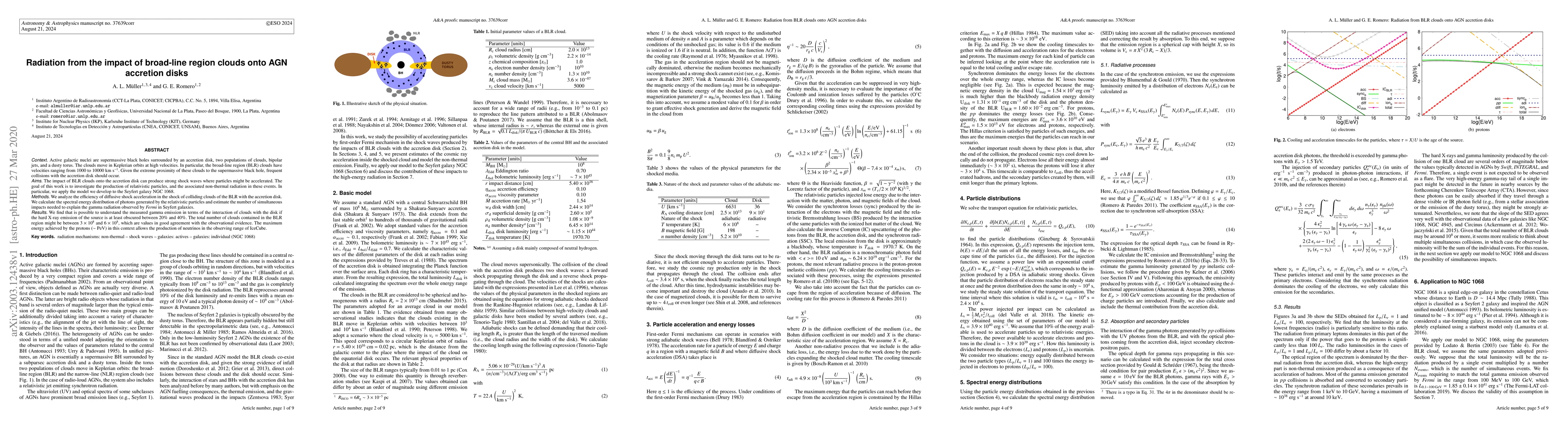 This paper investigates the impact of broad-line region clouds on AGN accretion disks, focusing on the production of relativistic particles and non-thermal radiation. It finds that interactions between BLR clouds and the accretion disk can explain the gamma radiation in Seyfert galaxies, provided the hard X-ray emission is partially obscured.