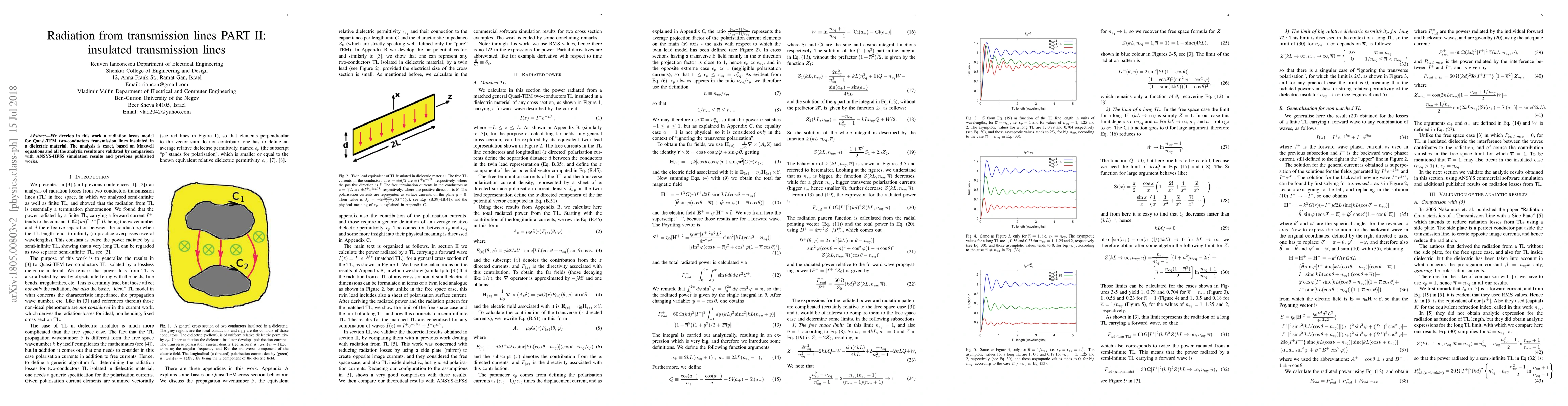 This paper presents an exact model for radiation losses in insulated Quasi-TEM two-conductor transmission lines using Maxwell's equations, validated by ANSYS-HFSS simulations and prior research. The analytical results accurately reflect the transmission line's radiation characteristics.