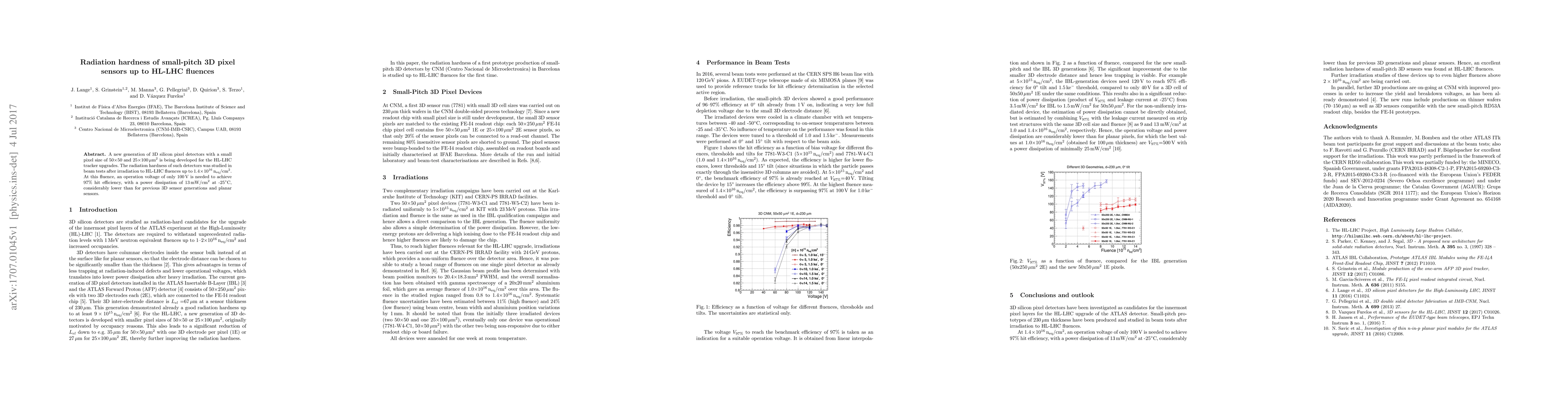 New 3D pixel sensors show improved radiation hardness at HL-LHC fluences, requiring lower operation voltage for optimal performance.