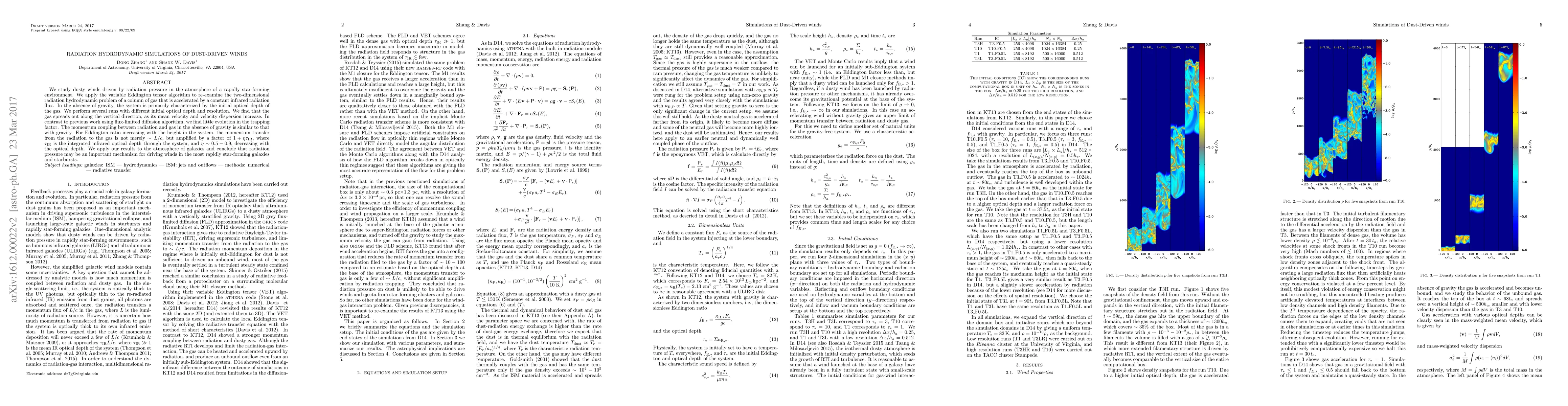 We study dusty winds driven by radiation pressure in the atmosphere of a rapidly star-forming environment. We apply the variable Eddington tensor algorithm to re-examine the two-dimensional radiation hydrodynamic problem of a column of gas that is accelerated by a constant infrared radiation flux. In the absence of gravity, the system is primarily characterized by the initial optical depth of the gas. We perform several runs with different initial optical depth and resolution. We find that the gas spreads out along the vertical direction, as its mean velocity and velocity dispersion increase. In contrast to previous work using flux-limited diffusion algorithm, we find little evolution in the trapping factor. The momentum coupling between radiation and gas in the absence of gravity is similar to that with gravity. For Eddington ratio increasing with the height in the system, the momentum transfer from the radiation to the gas is not merely $\sim L/c$, but amplified by a factor of $1+\eta \tau_{\rm IR}$, where $\tau_{\rm IR}$ is the integrated infrared optical depth through the system, and $\eta\sim0.5-0.9$, decreasing with the optical depth. We apply our results to the atmosphere of galaxies and conclude that radiation pressure may be an important mechanism for driving winds in the most rapidly star-forming galaxies and starbursts.