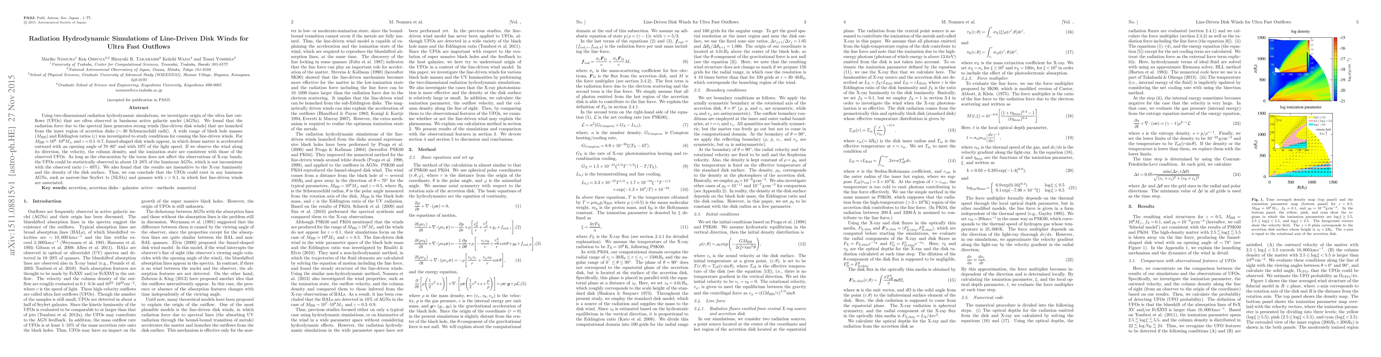 This paper uses radiation hydrodynamic simulations to explore the origin of ultra fast outflows (UFOs) in active galactic nuclei (AGNs), finding that spectral line radiation forces generate strong winds from accretion disk regions near 30 Schwarzschild radii. The study suggests that UFOs could be observed in 13-28% of luminous AGNs, consistent with observations, and are likely present in AGNs with high Eddington ratios.