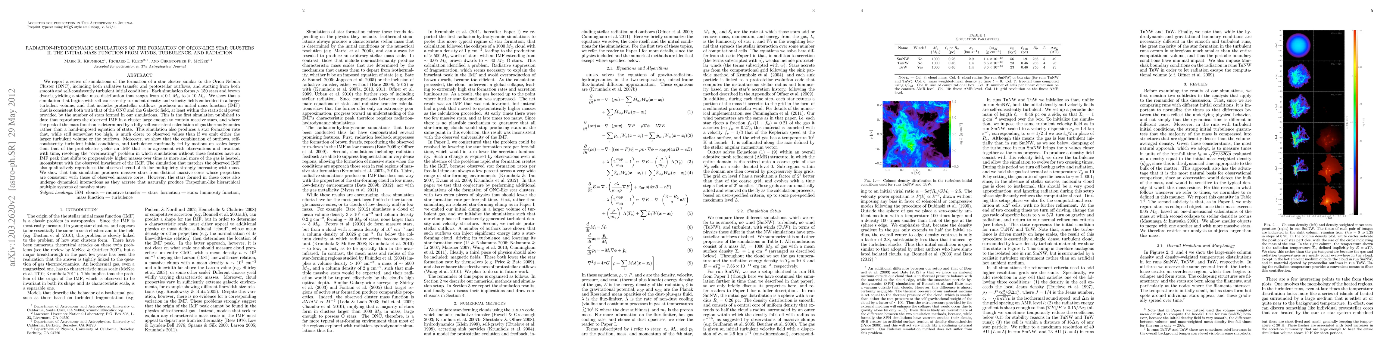 This study uses radiation-hydrodynamic simulations to model the formation of Orion-like star clusters, showing that turbulence and protostellar outflows are crucial for producing an initial mass function (IMF) consistent with observations. The simulation with self-consistent turbulence and outflows yields an IMF and star formation rate closer to real clusters, resolving the "overheating" problem and predicting an increasing trend of stellar multiplicity with mass.