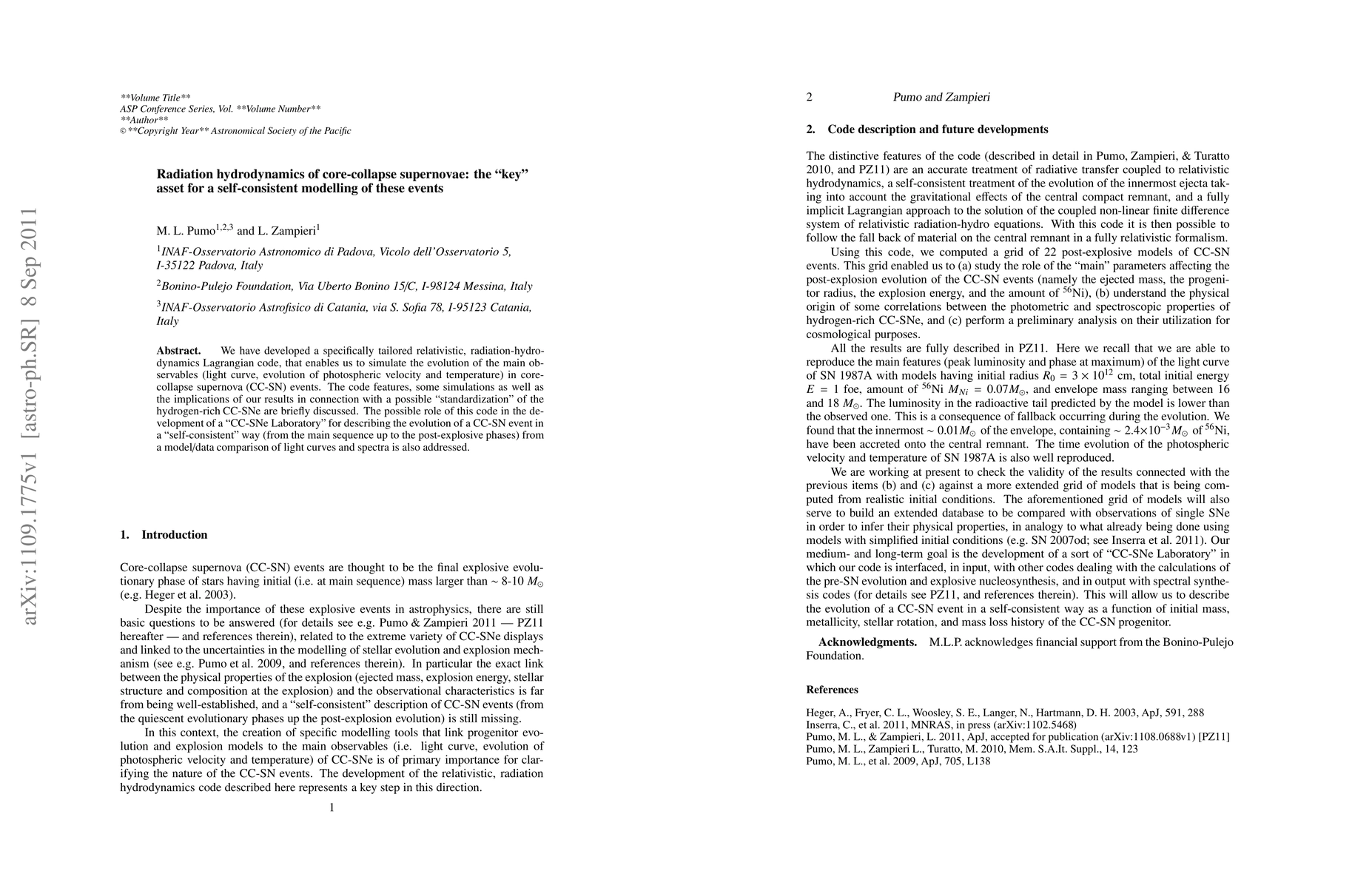 The paper presents a novel relativistic, radiation-hydrodynamics code for simulating core-collapse supernova (CC-SN) events, enabling accurate modeling of observables like light curves and photospheric velocity/temperature. The code's potential for standardizing hydrogen-rich CC-SNe and establishing a 'CC-SNe Laboratory' for self-consistent event description from the main sequence to post-explosive phases is discussed.