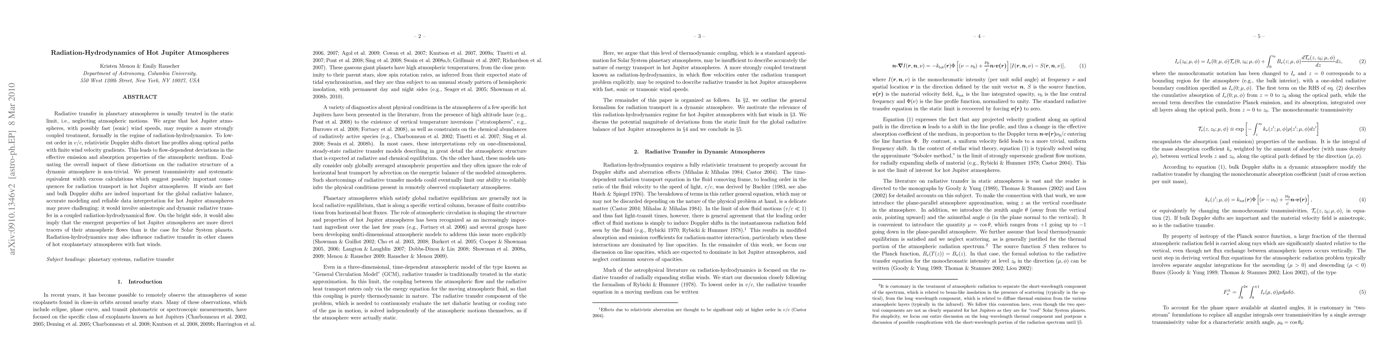 This paper argues that hot Jupiter atmospheres, characterized by fast wind speeds, necessitate a radiation-hydrodynamics approach for accurate radiative transfer modeling. It highlights the impact of Doppler shifts on line profiles and suggests that these effects could significantly influence the radiative structure and interpretation of hot Jupiter atmospheres.