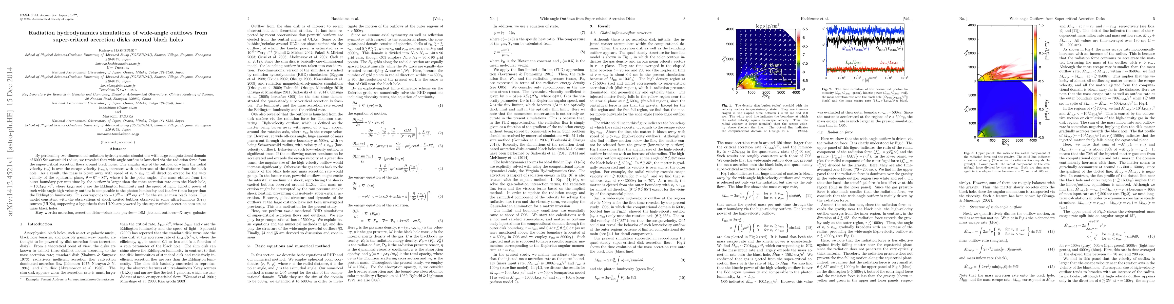 The research uses 2D radiation hydrodynamics simulations to show that super-critical accretion disks around black holes launch wide-angle outflows driven by radiation force. These outflows eject mass at speeds exceeding escape velocity, covering all directions except near the equator. The ejected mass rate surpasses the black hole's accretion rate, and the outflow's kinetic power equals or exceeds the photon luminosity, corresponding to 10^39-10^40 erg/s for stellar-mass black holes. This model supports the hypothesis that ultra-luminous X-ray sources (ULXs) are powered by super-critical accretion onto stellar-mass black holes, consistent with observations of shock-excited bubbles in ULXs.