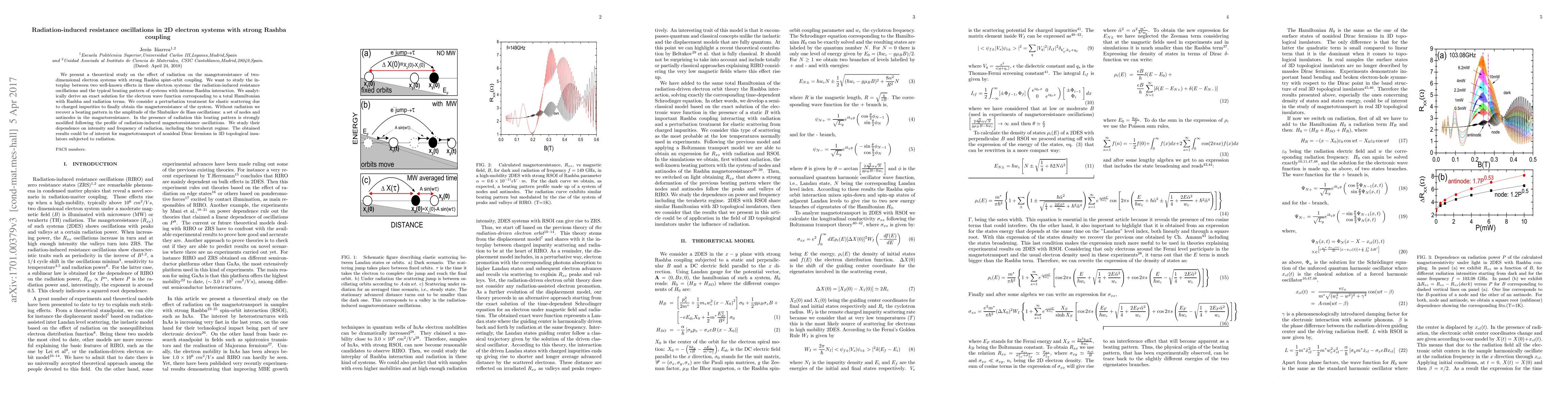 This paper theoretically investigates the impact of radiation on magnetoresistance in 2D electron systems with strong Rashba spin-orbit coupling, revealing how radiation-induced resistance oscillations modify the typical beating pattern caused by Rashba interaction. The study derives an exact electron wave function solution and analyzes the magnetoresistance under various radiation intensities and frequencies, including the terahertz regime.