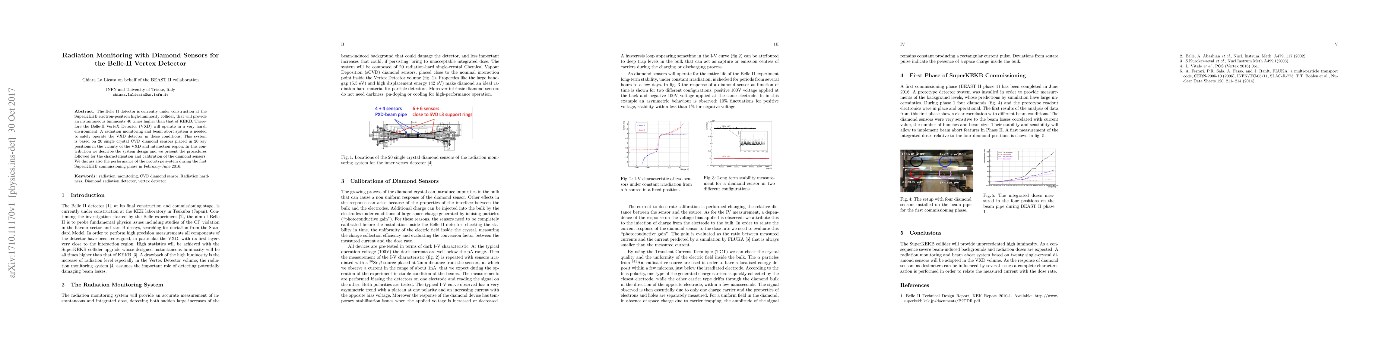 The Belle II detector is currently under construction at the SuperKEKB electron-positron high-luminosity collider, that will provide an instantaneous luminosity 40 times higher than that of KEKB. There- fore the Belle-II VerteX Detector (VXD) will operate in a very harsh environment. A radiation monitoring and beam abort system is needed to safely operate the VXD detector in these conditions. This system is based on 20 single crystal CVD diamond sensors placed in 20 key positions in the vicinity of the VXD and interaction region. In this contribution we describe the system design and we present the procedures followed for the characterisation and calibration of the diamond sensors. We discuss also the performance of the prototype system during the first SuperKEKB commissioning phase in February-June 2016.