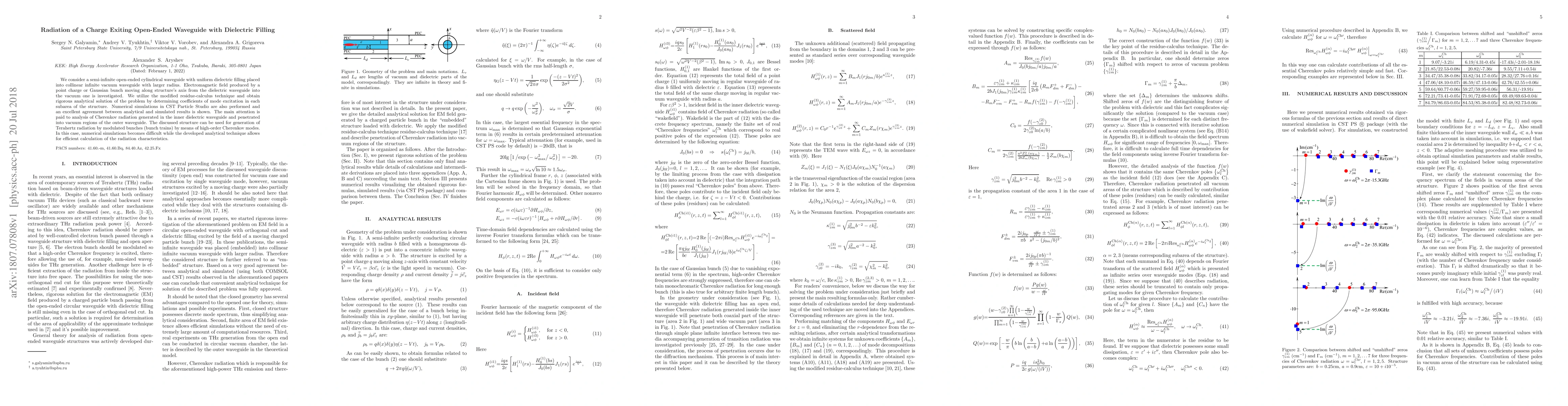 This paper investigates the electromagnetic field and Cherenkov radiation generated by a charge moving through a semi-infinite open-ended cylindrical waveguide with a dielectric filling transitioning into a larger vacuum waveguide. Analytical and numerical methods are used to determine the mode excitation coefficients and validate the results, highlighting the potential for generating Terahertz radiation using high-order Cherenkov modes.