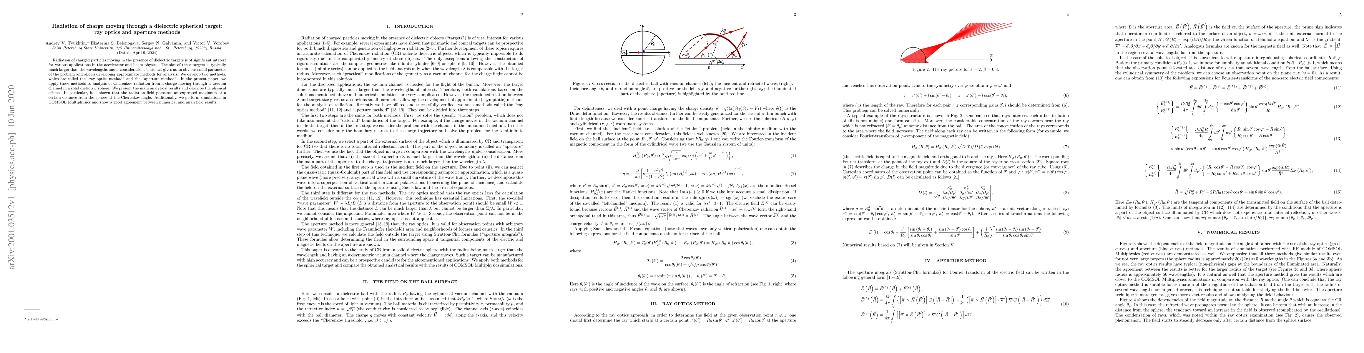Radiation of charged particles moving in the presence of dielectric targets is of significant interest for various applications in the accelerator and beam physics. The size of these targets is typically much larger than the wavelengths under consideration. This fact gives us an obvious small parameter of the problem and allows developing approximate methods for analysis. We develop two methods, which are called the "ray optics method" and the "aperture method". In the present paper, we apply these methods to analysis of Cherenkov radiation from a charge moving through a vacuum channel in a solid dielectric sphere. We present the main analytical results and describe the physical effects. In particular, it is shown that the radiation field possesses an expressed maximum at a certain distance from the sphere at the Cherenkov angle. Additionally, we perform simulations in COMSOL Multiphysics and show a good agreement between numerical and analytical results.