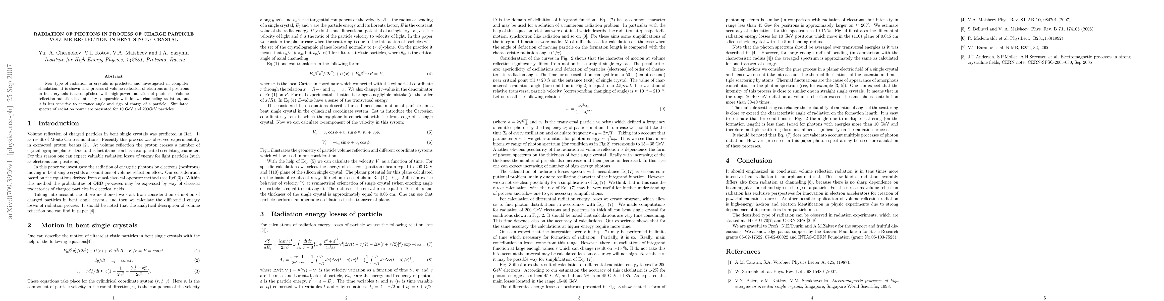 New type of radiation in crystals is predicted and investigated in computer simulation. It is shown that process of volume reflection of electrons and positrons in bent crystals is accomplished with high-power radiation of photons. Volume reflection radiation has intensity comparable with known channeling radiation, but it is less sensitive to entrance angle and sign of charge of a particle. Simulated spectra of radiation power are presented for 10 GeV and 200GeV particles.