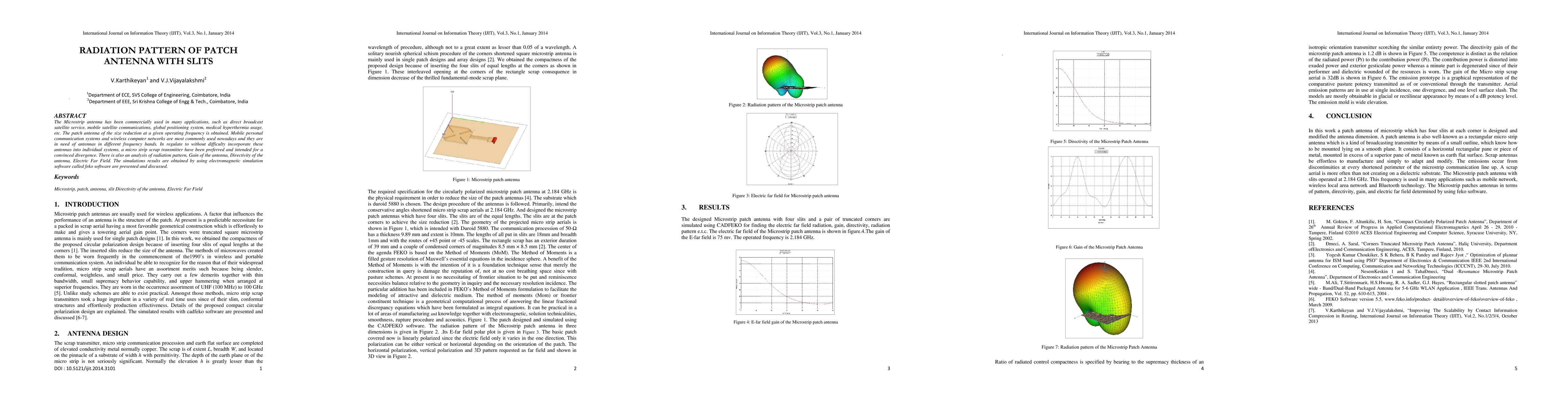 This paper investigates the radiation pattern of a microstrip patch antenna modified with slits to achieve size reduction at a given operating frequency. Simulation results using FEKO software analyze the antenna's gain, directivity, and electric far field, demonstrating its potential for mobile communication systems.
