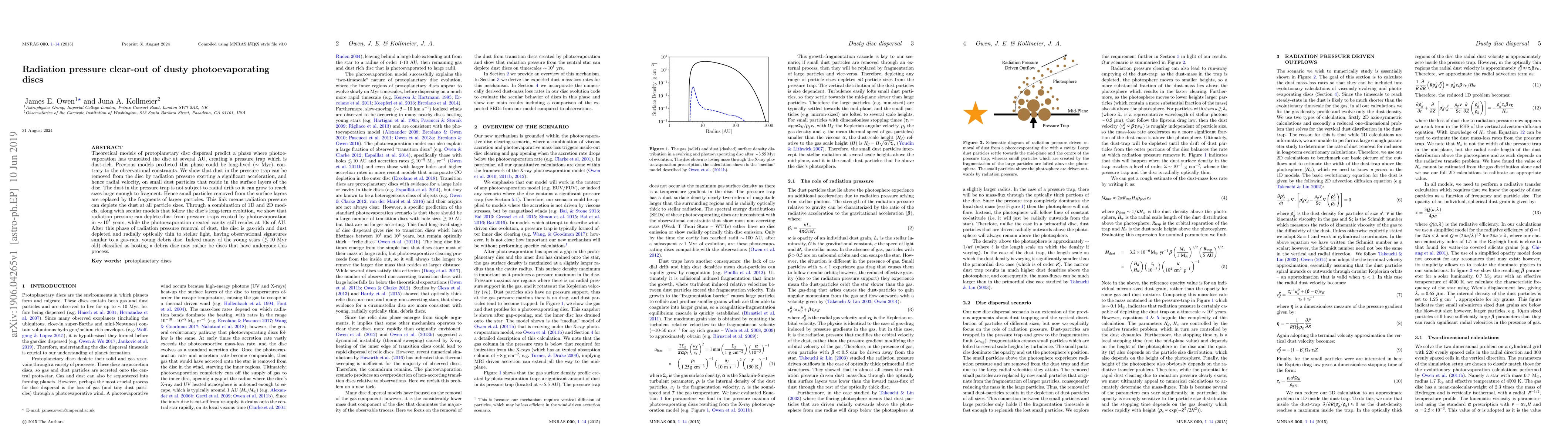 Theoretical models of protoplanetary disc dispersal predict a phase where photoevaporation has truncated the disc at several AU, creating a pressure trap which is dust-rich. Previous models predicted this phase could be long-lived (~Myr), contrary to the observational constraints. We show that dust in the pressure trap can be removed from the disc by radiation pressure exerting a significant acceleration, and hence radial velocity, on small dust particles that reside in the surface layers of the disc. The dust in the pressure trap is not subject to radial drift so it can grow to reach sizes large enough to fragment. Hence small particles removed from the surface layers are replaced by the fragments of larger particles. This link means radiation pressure can deplete the dust at all particle sizes. Through a combination of 1D and 2D models, along with secular models that follow the disc's long-term evolution, we show that radiation pressure can deplete dust from pressure traps created by photoevaporation in ~1e5 years, while the photoevaporation created cavity still resides at 10s of AU. After this phase of radiation pressure removal of dust, the disc is gas-rich and dust depleted and radially optically thin to stellar light, having observational signatures similar to a gas-rich, young debris disc. Indeed many of the young stars (~<10 Myr old) classified as hosting a debris disc may rather be discs that have undergone this process.