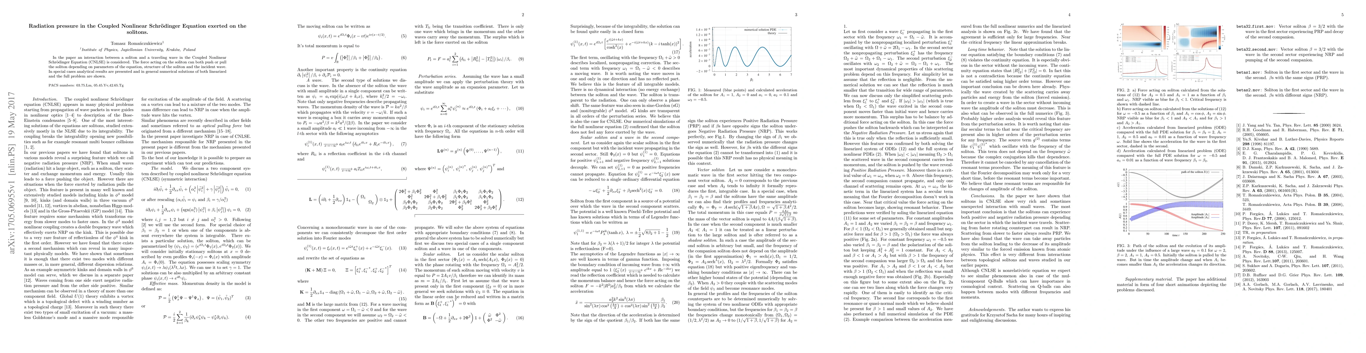 In the paper an interaction between a soliton and a traveling wave in the Coupled Nonlinear Schr\"odinger Equation (CNLSE) is considered. The force acting on the soliton can both push or pull the soliton depending on parameters of the equation, structure of the soliton and the incident wave. In special cases analytical results are presented and in general numerical solutions of both linearized and the full problem are shown.