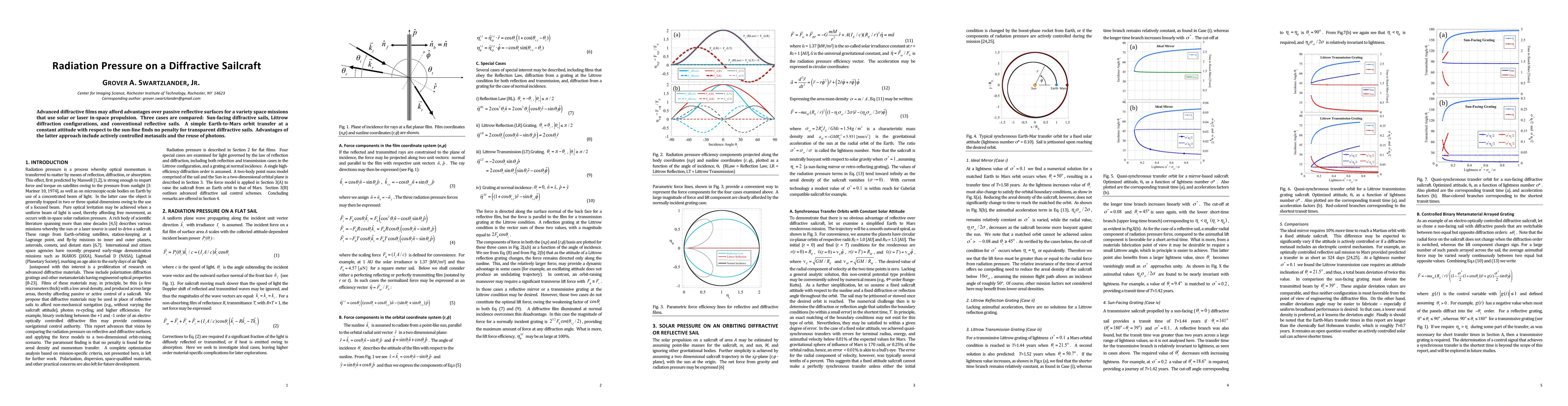 Advanced diffractive films may afford advantages over passive reflective surfaces for a variety space missions that use solar or laser in-space propulsion. Three cases are compared: Sun-facing diffractive sails, Littrow diffraction configurations, and conventional reflective sails. A simple Earth-to-Mars orbit transfer at a constant attitude with respect to the sun-line finds no penalty for transparent diffractive sails. Advantages of the latter approach include actively controlled metasails and the reuse of photons.