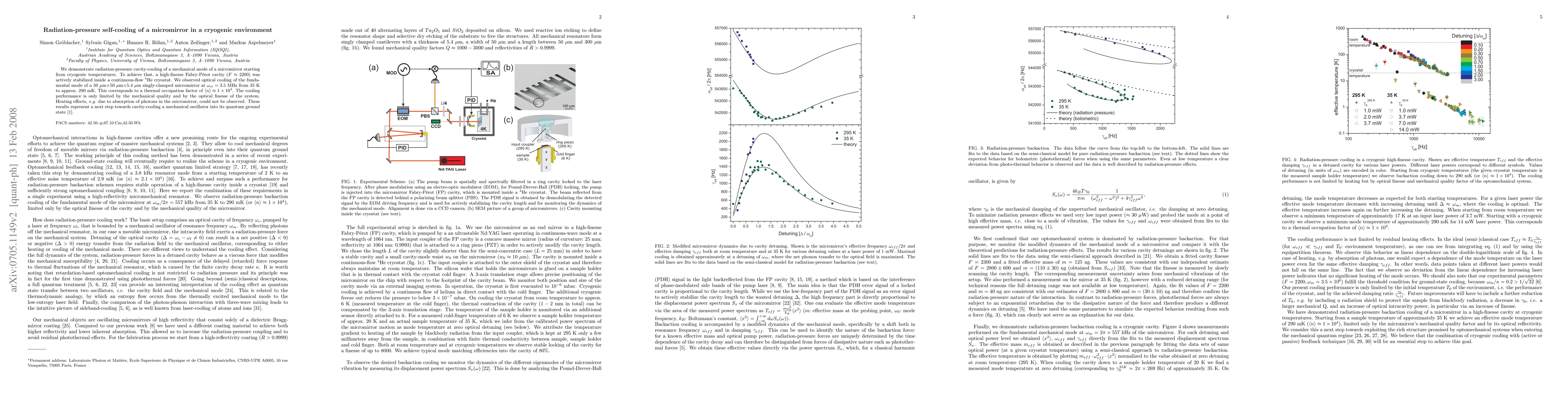 This paper details the successful demonstration of radiation-pressure cooling of a micromirror in cryogenic conditions, achieving a fundamental mode temperature drop from 35 K to around 290 mK using a high-finesse Fabry-Perot cavity within a 4He cryostat. The study indicates that the cooling is limited primarily by mechanical quality and optical finesse, marking progress toward quantum ground state cooling of mechanical oscillators.