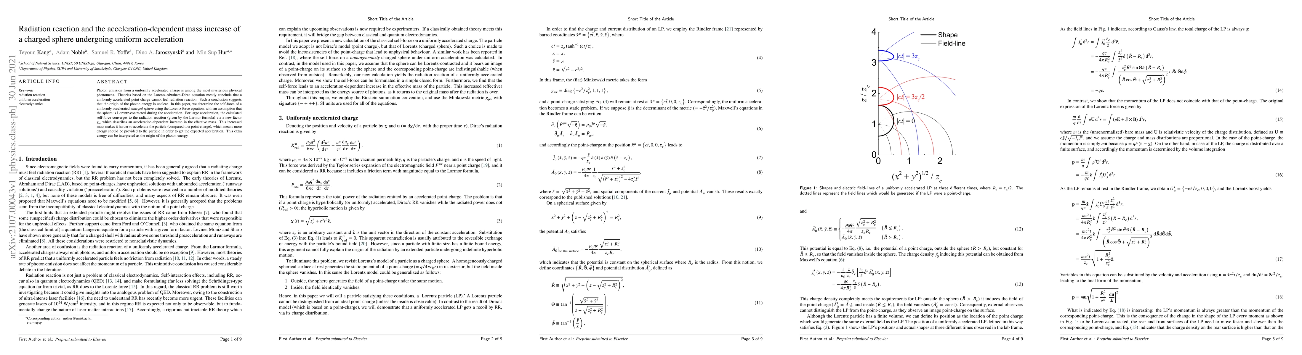 Photon emission from a uniformly accelerated charge is among the most mysterious physical phenomena. Theories based on the Lorentz-Abraham-Dirac equation mostly conclude that a uniformly accelerated point charge cannot feel radiation reaction. Such a conclusion suggests that the origin of the photon energy is unclear. In this paper, we determine the self-force of a uniformly accelerated charged sphere using the Lorentz force equation, with an assumption that the sphere is Lorentz-contracted during the acceleration. For large acceleration, the calculated self-force converges to the radiation reaction (given by the Larmor formula) via a new factor $\gamma_{a}$, which describes an acceleration-dependent increase in the effective mass. This increased mass makes it harder to accelerate the particle (compared to a point-charge), which means more energy should be provided to the particle in order to get the expected acceleration. This extra energy can be interpreted as the origin of the photon energy.