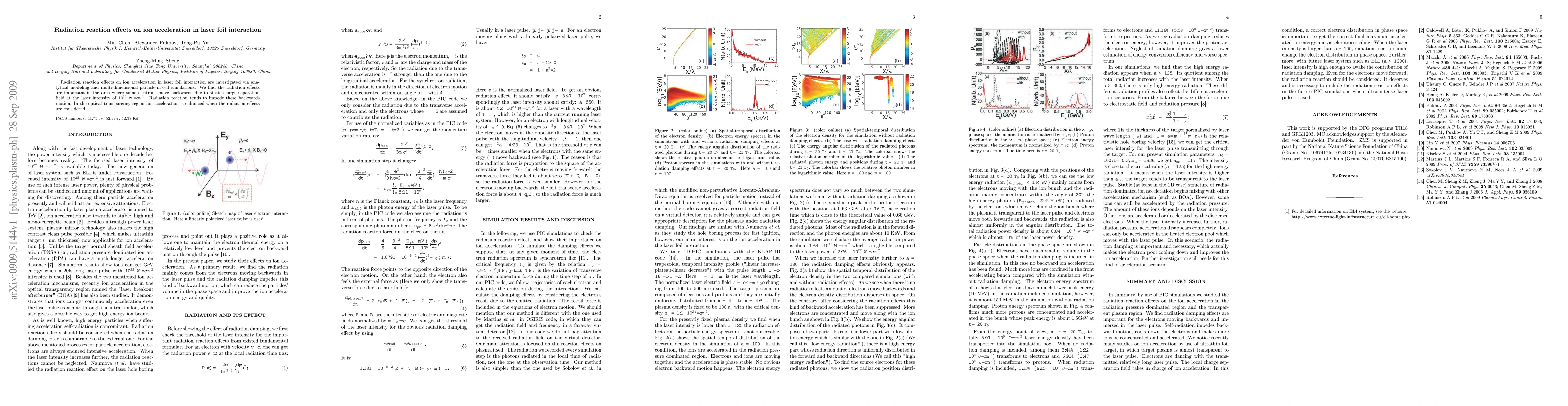 This paper investigates radiation reaction effects on ion acceleration during laser-foil interactions using analytical modeling and simulations. It finds that radiation reaction impedes electron backward motion and enhances ion acceleration in the optical transparency region at high laser intensities.