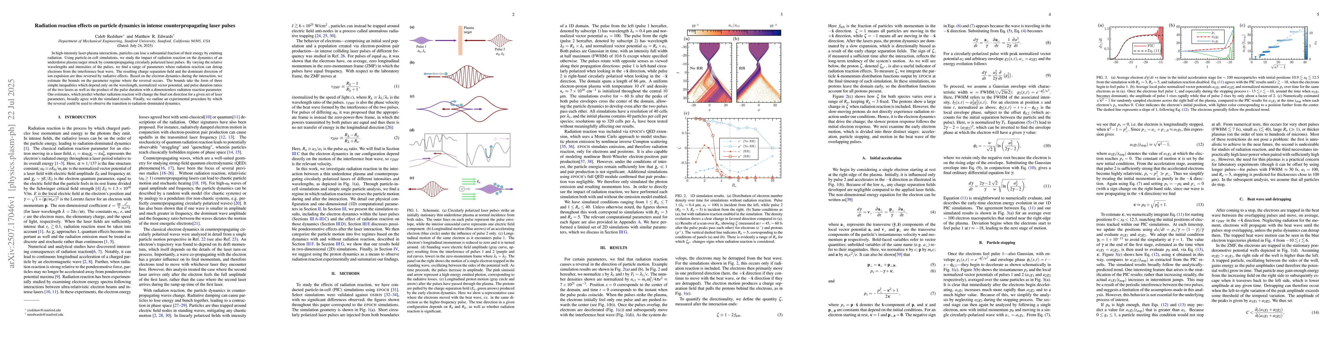In high-intensity laser-plasma interactions, particles can lose a substantial fraction of their energy by emitting radiation. Using particle-in-cell simulations, we study the impact of radiation reaction on the dynamics of an underdense plasma target struck by counterpropagating circularly polarized laser pulses. By varying the relative wavelengths and intensities of the pulses, we find a range of parameters where radiation reaction can detrap electrons from the interference beat wave. The resulting charge separation field and the dominant direction of ion expulsion are thus reversed by radiative effects. Based on the electron dynamics during the interaction, we estimate the bounds on the parameter regime where the reversal occurs. The bounds take the form of three simple inequalities which depend only on the wavelength, normalized vector potential, and pulse duration ratios of the two lasers as well as the product of the pulse duration with a dimensionless radiation reaction parameter. Our estimates, which predict whether radiation reaction will change the final ion direction for a given set of laser parameters, broadly agree with the simulated results. Finally, we outline an experimental procedure by which the reversal could be used to observe the transition to radiation-dominated dynamics.