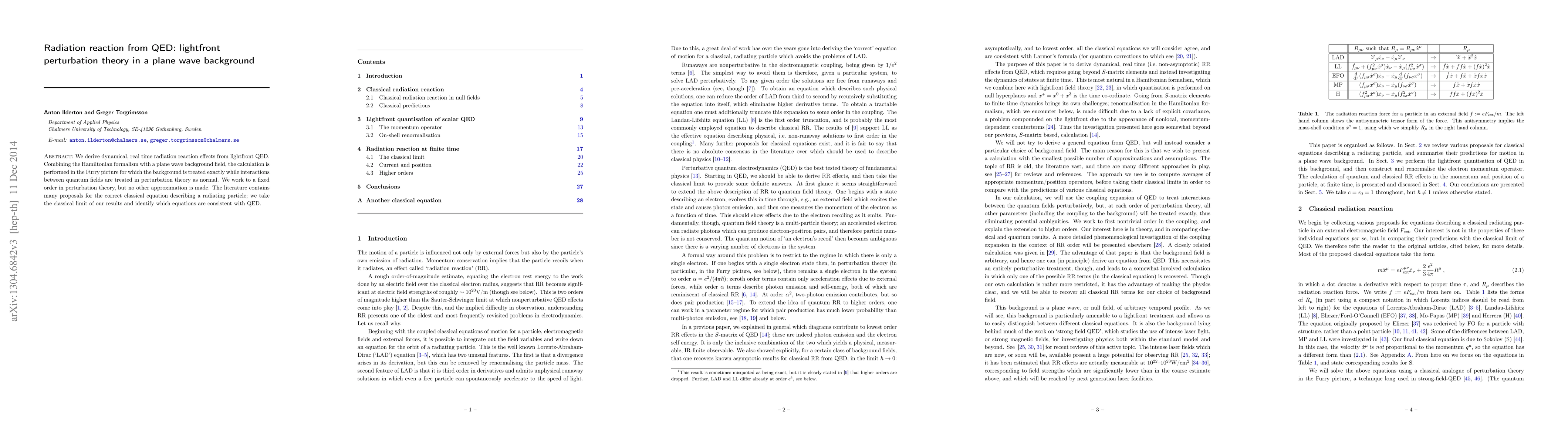 We derive dynamical, real time radiation reaction effects from lightfront QED. Combining the Hamiltonian formalism with a plane wave background field, the calculation is performed in the Furry picture for which the background is treated exactly while interactions between quantum fields are treated in perturbation theory as normal. We work to a fixed order in perturbation theory, but no other approximation is made. The literature contains many proposals for the correct classical equation describing a radiating particle; we take the classical limit of our results and identify which equations are consistent with QED.