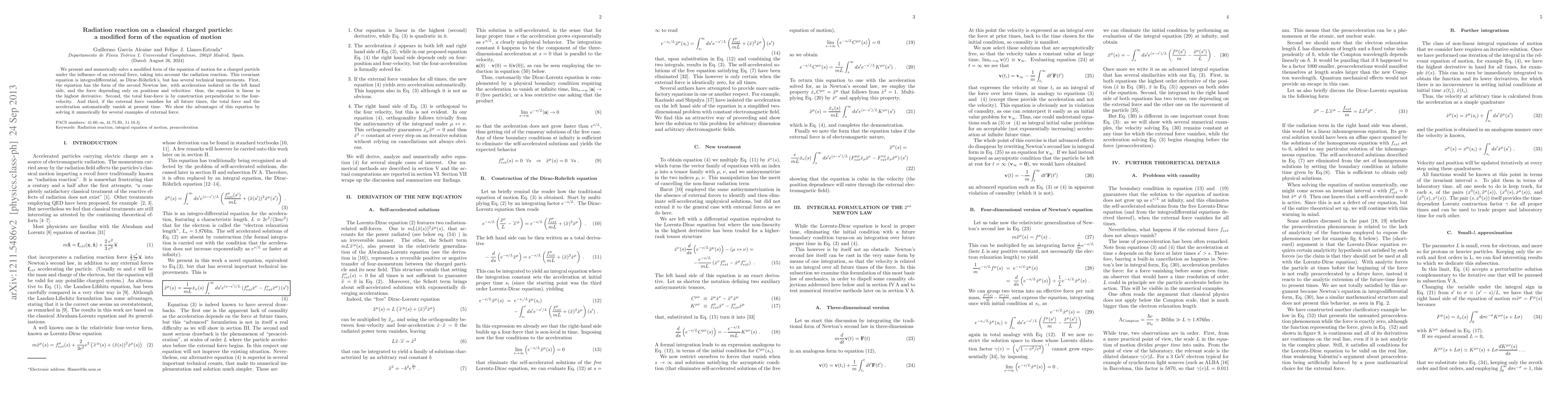 This paper introduces a modified integrodifferential equation of motion for a charged particle considering radiation reaction, which is linear in the highest derivative and ensures the total four-force is perpendicular to the four-velocity. The authors demonstrate its advantages through numerical solutions for various external forces.