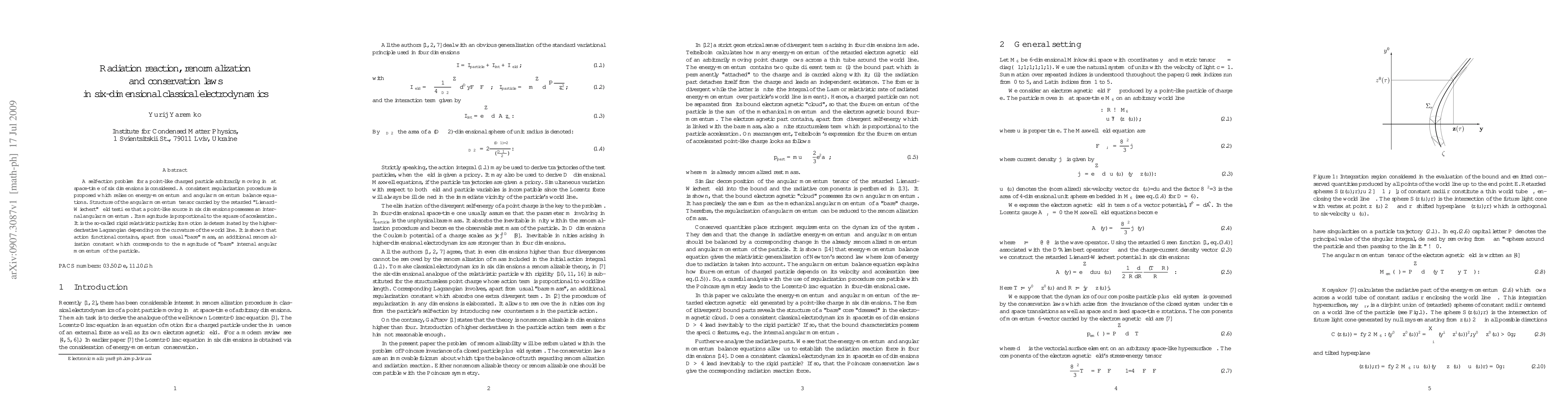 A self-action problem for a point-like charged particle arbitrarily moving in flat space-time of six dimensions is considered. A consistent regularization procedure is proposed which relies on energy-momentum and angular momentum balance equations. Structure of the angular momentum tensor carried by the retarded "Li\'enard-Wiechert" field testifies that a point-like source in six dimensions possesses an internal angular momentum. Its magnitude is proportional to the square of acceleration. It is the so-called {\em rigid} relativistic particle; its motion is determinated by the higher-derivative Lagrangian depending on the curvature of the world line. It is shown that action functional contains, apart from usual "bare" mass, an additional renormalization constant which corresponds to the magnitude of "bare" internal angular momentum of the particle.