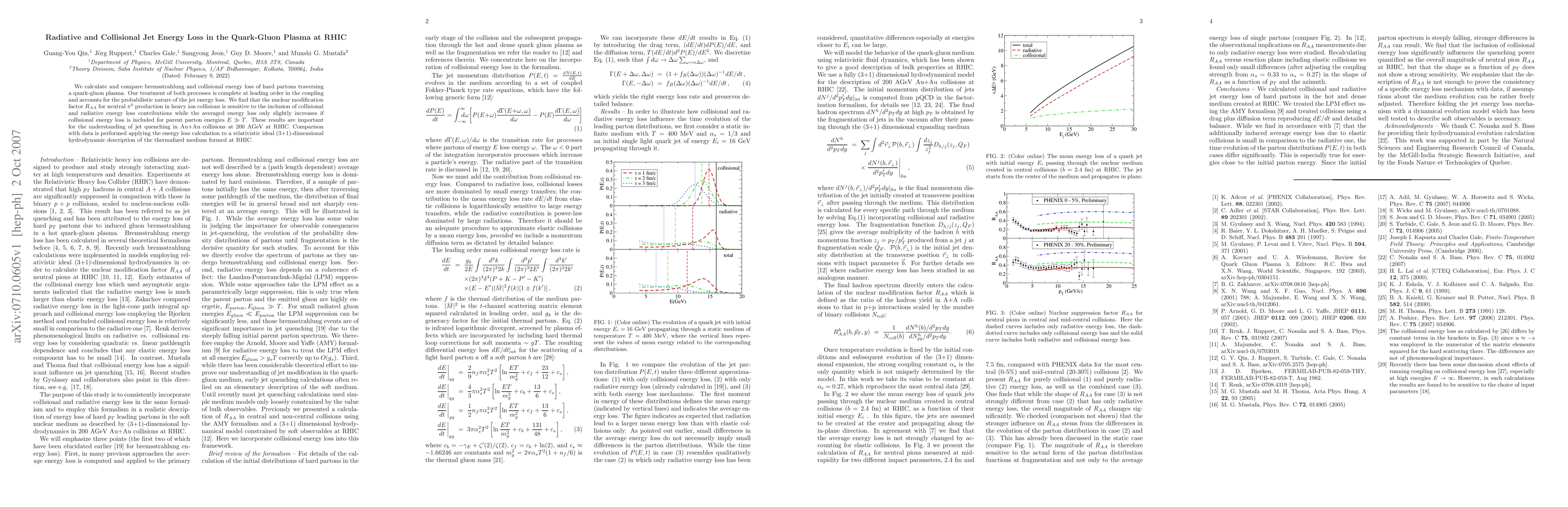 We calculate and compare bremsstrahlung and collisional energy loss of hard partons traversing a quark-gluon plasma. Our treatment of both processes is complete at leading order in the coupling and accounts for the probabilistic nature of the jet energy loss. We find that the nuclear modification factor $R_{AA}$ for neutral $\pi^0$ production in heavy ion collisions is sensitive to the inclusion of collisional and radiative energy loss contributions while the averaged energy loss only slightly increases if collisional energy loss is included for parent parton energies $E\gg T$. These results are important for the understanding of jet quenching in Au+Au collisions at $200 {\rm AGeV}$ at RHIC. Comparison with data is performed applying the energy loss calculation to a relativistic ideal (3+1)-dimensional hydrodynamic description of the thermalized medium formed at RHIC.