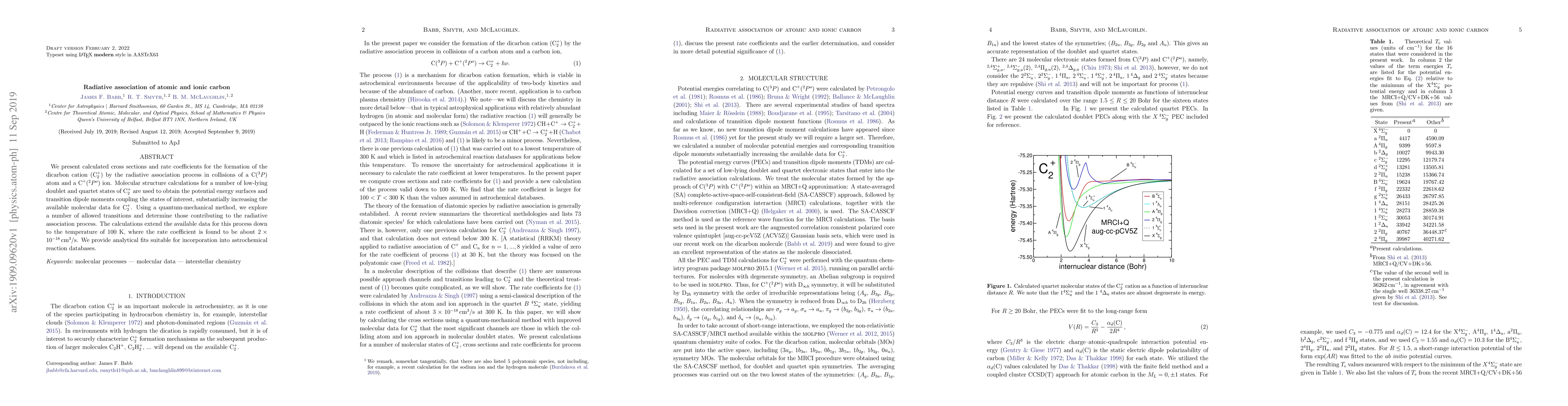 Researchers calculated cross sections and rate coefficients for the formation of the dicarbon cation (C$_2^+$) through radiative association, determining a rate coefficient of about $2 imes 10^{-18}$ cm$^3$/s at 100 K.