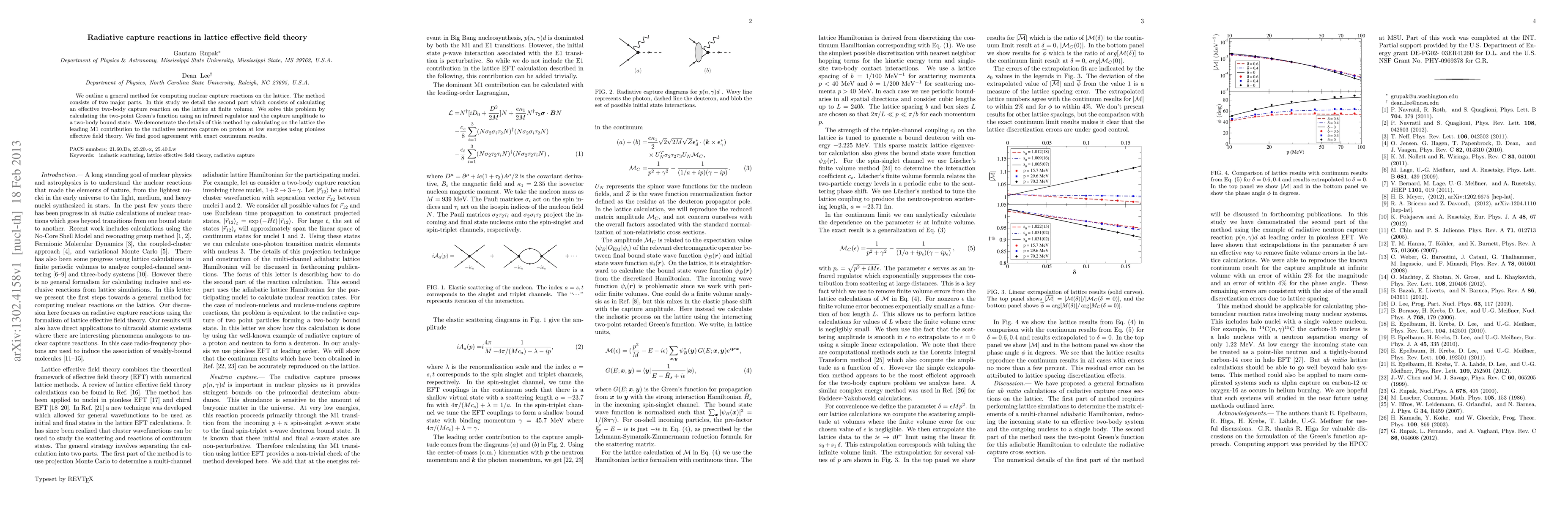 This paper details a method for computing nuclear capture reactions using lattice effective field theory, focusing on calculating an effective two-body capture reaction at finite volume. The authors demonstrate this method by calculating the leading M1 contribution to radiative neutron capture on a proton, achieving good agreement with continuum results.