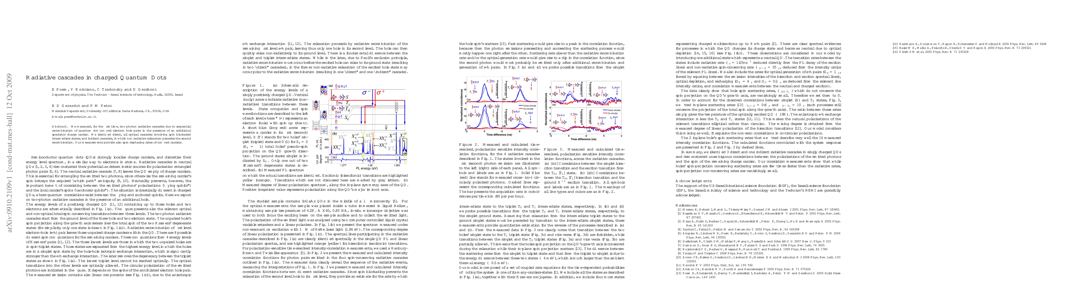 Researchers discovered two types of radiative cascades in quantum dots involving sequential recombination of electron-hole pairs and a spectator charge carrier, providing insights into spin dephasing rates.
