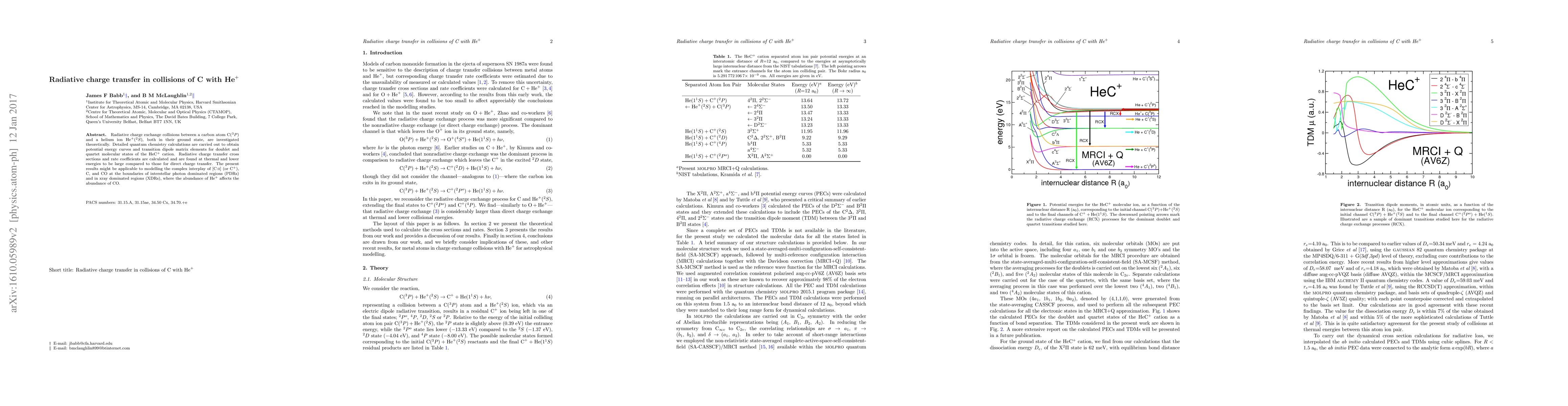 This paper investigates radiative charge exchange in collisions between ground state carbon atoms and helium ions using quantum chemistry calculations. The study finds significant radiative charge transfer cross sections and rate coefficients, which are important for modeling interstellar regions where helium ions influence carbon monoxide abundance.
