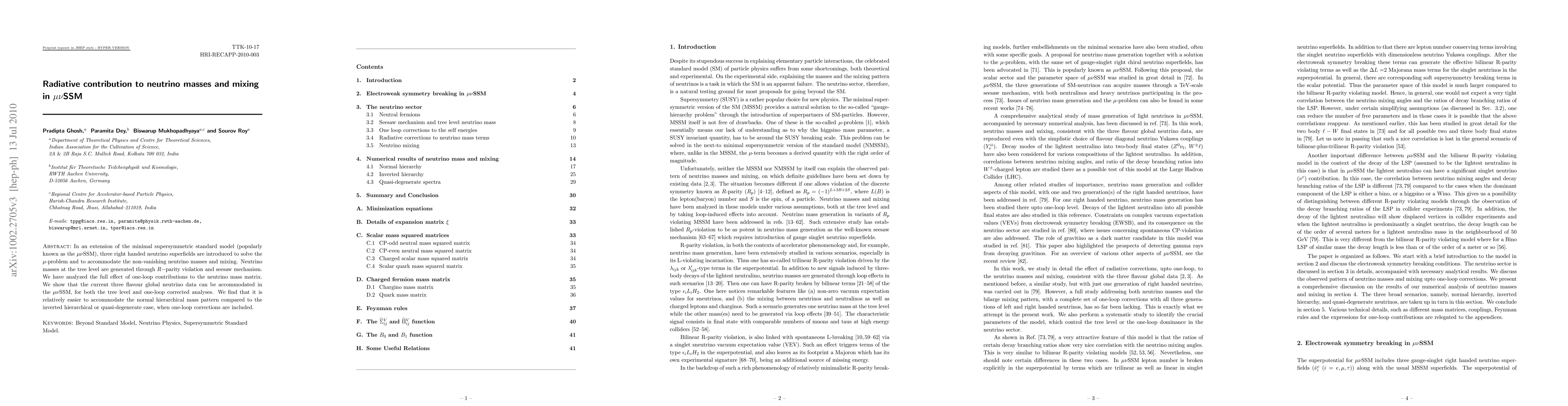 This paper explores the $\mu\nu$SSM, an extended version of the minimal supersymmetric standard model, which introduces three right-handed neutrino superfields to address the $\mu$-problem and explain neutrino masses. It analyzes one-loop contributions to the neutrino mass matrix and finds that the model can accommodate current three-flavor neutrino data, with the normal hierarchical mass pattern being more favorable when one-loop corrections are included.