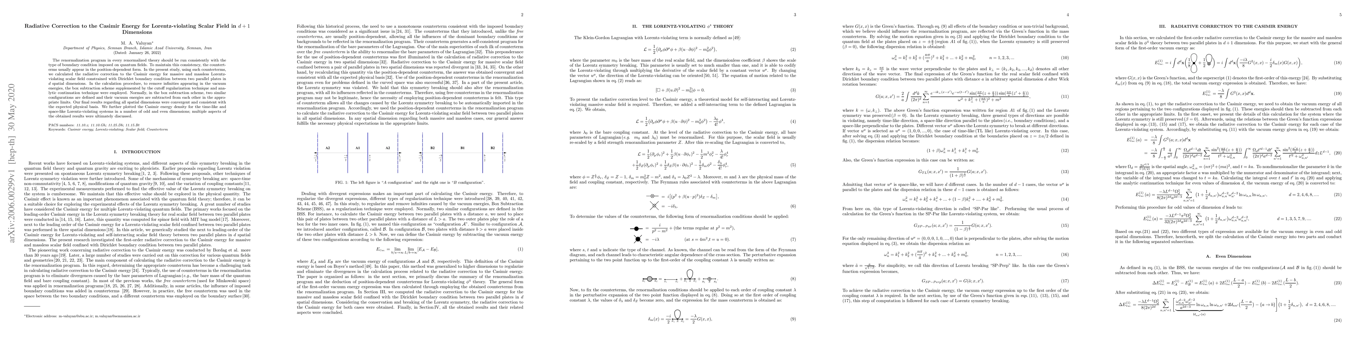 This paper investigates the radiative correction to the Casimir energy for a Lorentz-violating scalar field under Dirichlet boundary conditions between parallel plates in d+1 dimensions, employing counterterms and regularization techniques to manage infinities. The results are consistent across spatial dimensions and reveal distinct Casimir energy densities for time-like and space-like Lorentz-violating systems.