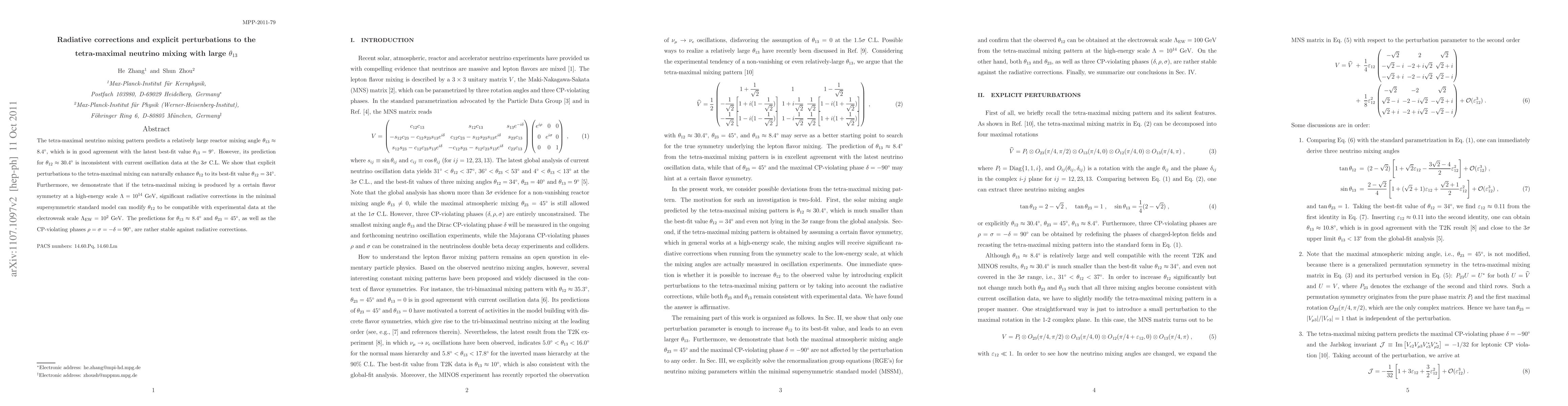 Research shows that adding perturbations to the tetra-maximal neutrino mixing pattern can naturally enhance theta_12 to its best-fit value, while radiative corrections may modify this angle at lower energy scales.