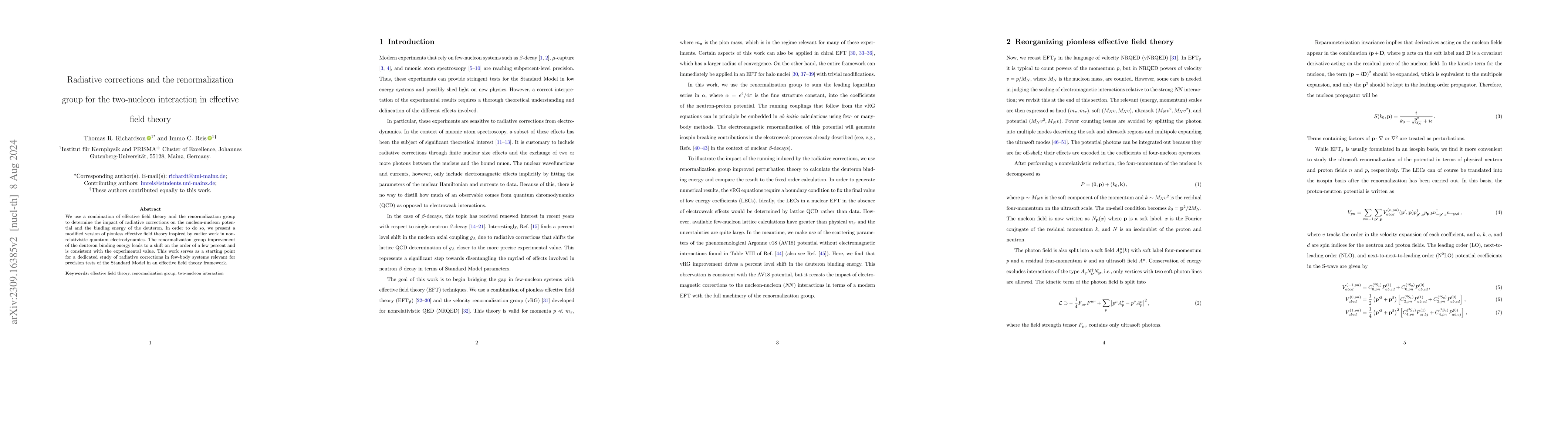 This paper employs effective field theory and renormalization group techniques to assess radiative corrections' influence on nucleon-nucleon interactions, revealing that they contribute $1-2\%$ to the deuteron's binding energy. This study lays the groundwork for precision tests of the Standard Model in few-nucleon systems.