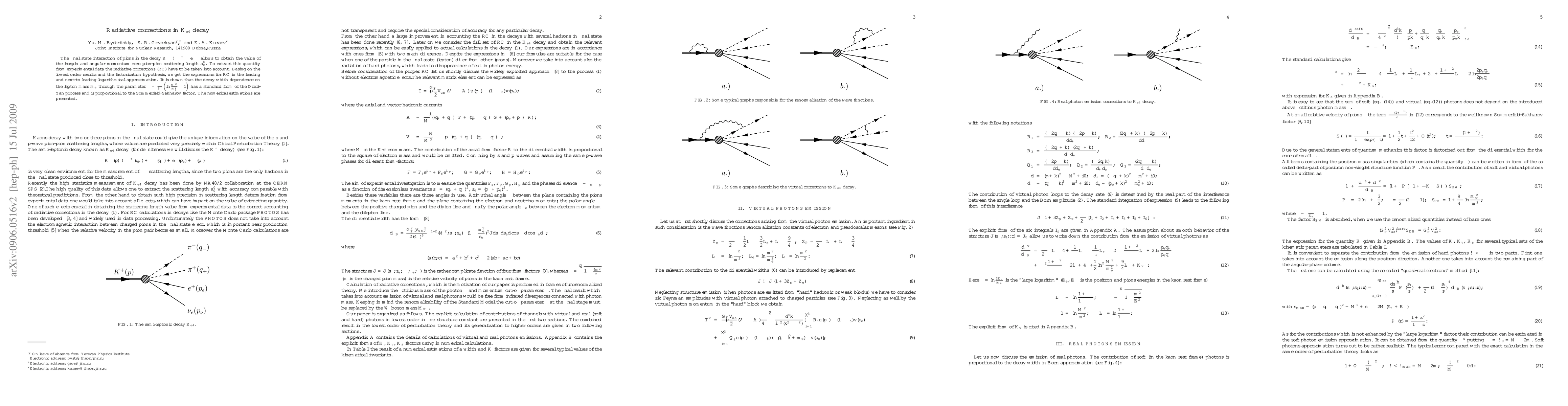 The final state interaction of pions in the decay $K^\pm\to \pi^+\pi^-e^\pm\nu$ allows to obtain the value of the isospin and angular momentum zero pion-pion scattering length $a_0^0$. To extract this quantity from experimental data the radiative corrections (RC) have to be taken into account. Basing on the lowest order results and the factorization hypothesis, we get the expressions for RC in the leading and next-to leading logarithmical approximation. It is shown that the decay width dependence on the lepton mass $m_e$ through the parameter $\sigma=\frac{\alpha}{2\pi}\br{\ln\frac{M^2}{m_e^2}-1}$ has a standard form of the Drell-Yan process and is proportional to the Sommerfeld-Sakharov factor. The numerical estimations are presented.