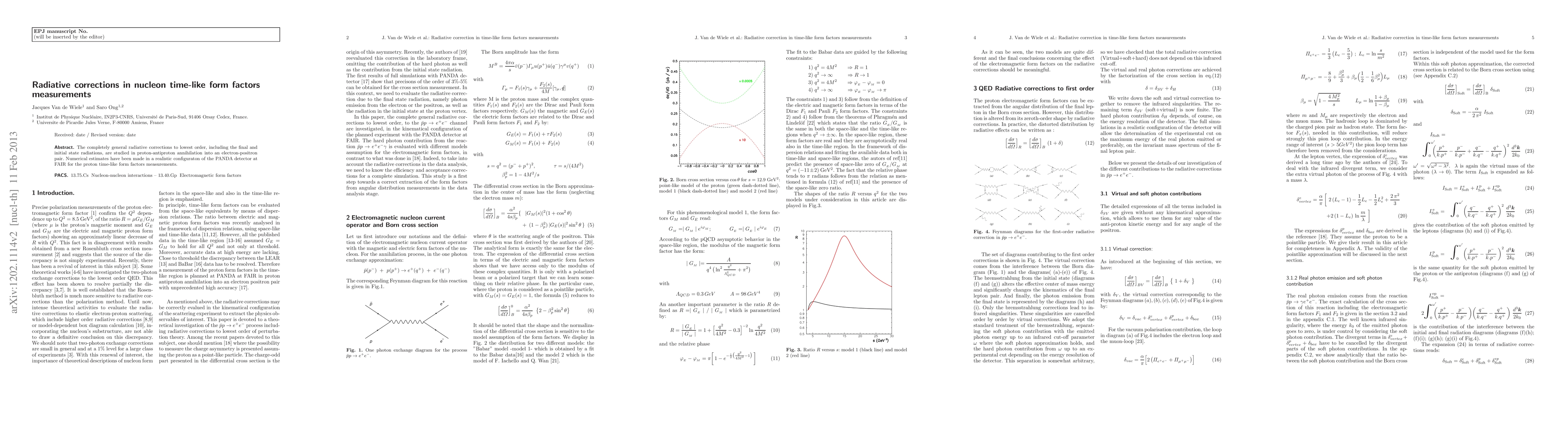 This paper investigates the general radiative corrections for proton-antiproton annihilation to an electron-positron pair, focusing on the proton's time-like form factors. Numerical estimates are provided for these corrections in the context of the PANDA detector at FAIR.