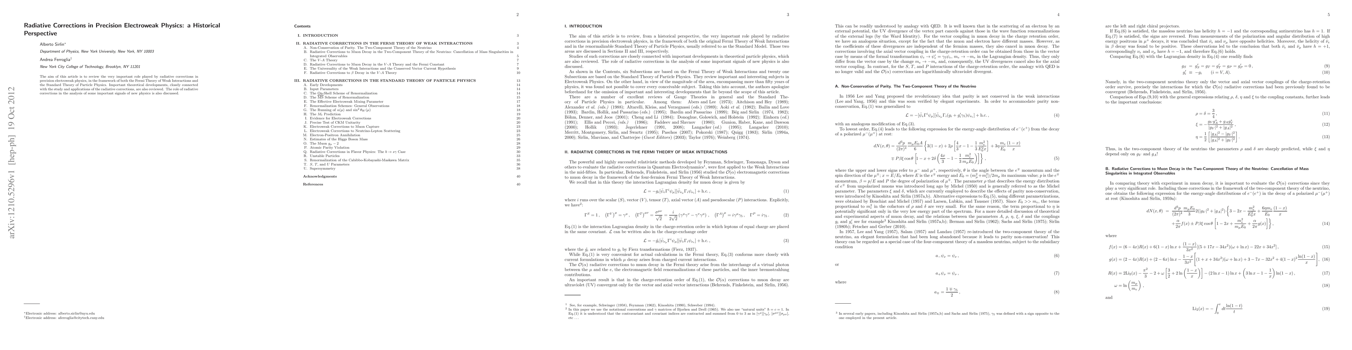 This paper reviews the crucial role of radiative corrections in precision electroweak physics, tracing their importance from the Fermi Theory to the Standard Model, and highlights their significance in detecting potential new physics signals.